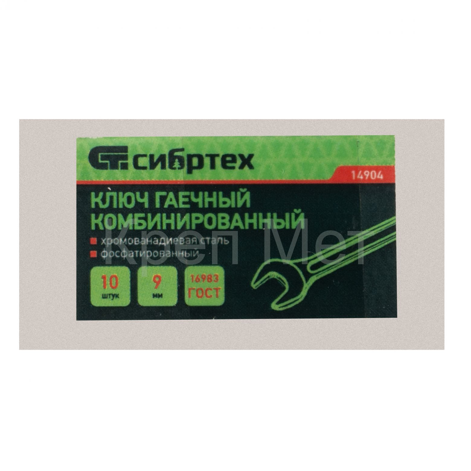 - Ключ комбинированый, 9 мм, CrV, фосфатированный Сибртех
