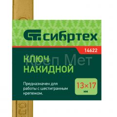- Ключ накидной, 13 х 17 мм, желтый цинк Сибртех