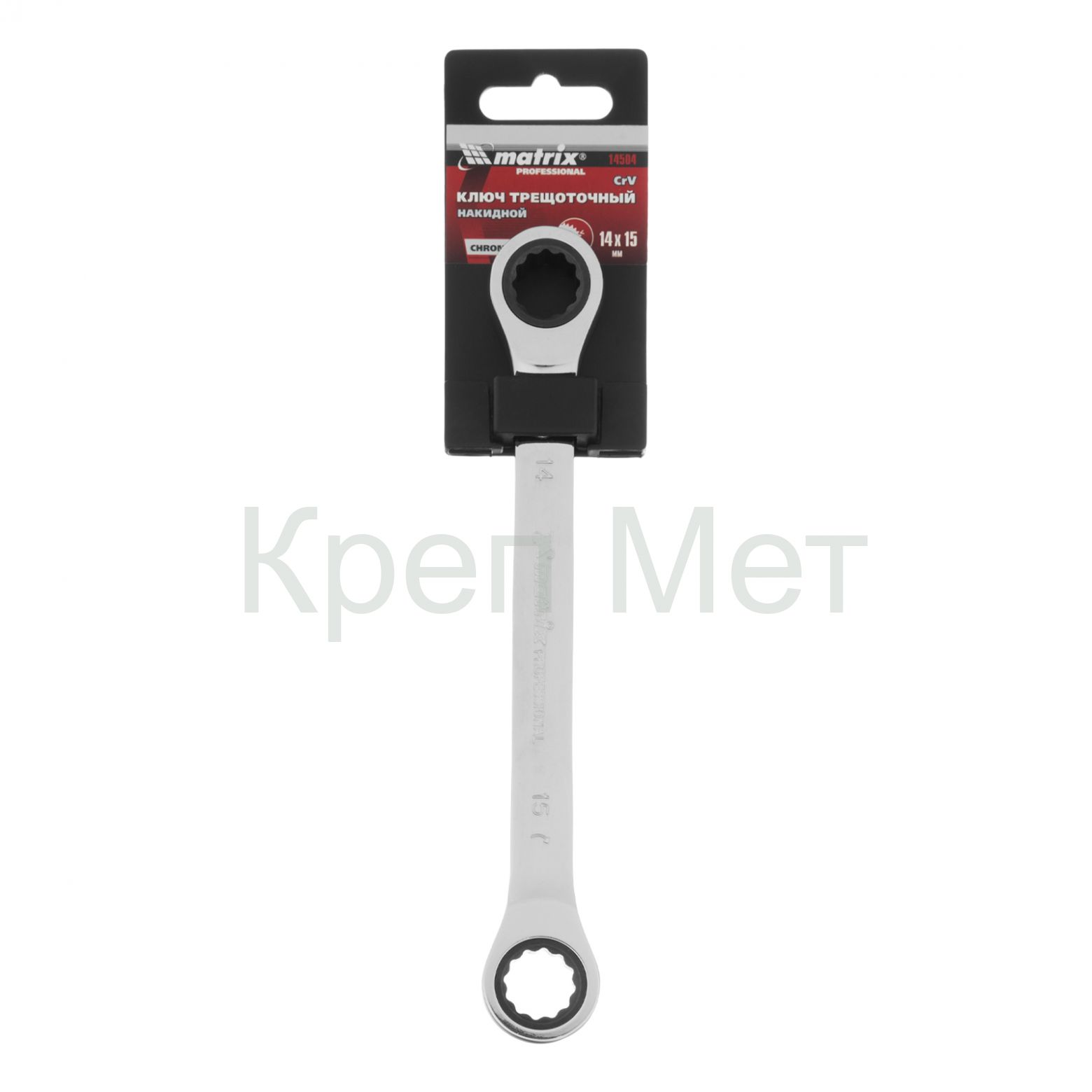 - Ключ накидной трещоточный, 14 х 15 мм, CrV, зеркальный хром Matrix Professional