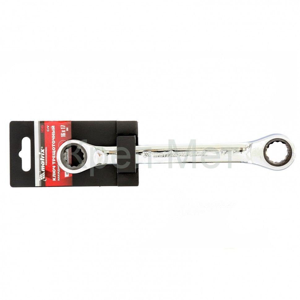 - Ключ накидной трещоточный, 16 х 17 мм, CrV, зеркальный хром Matrix Professional