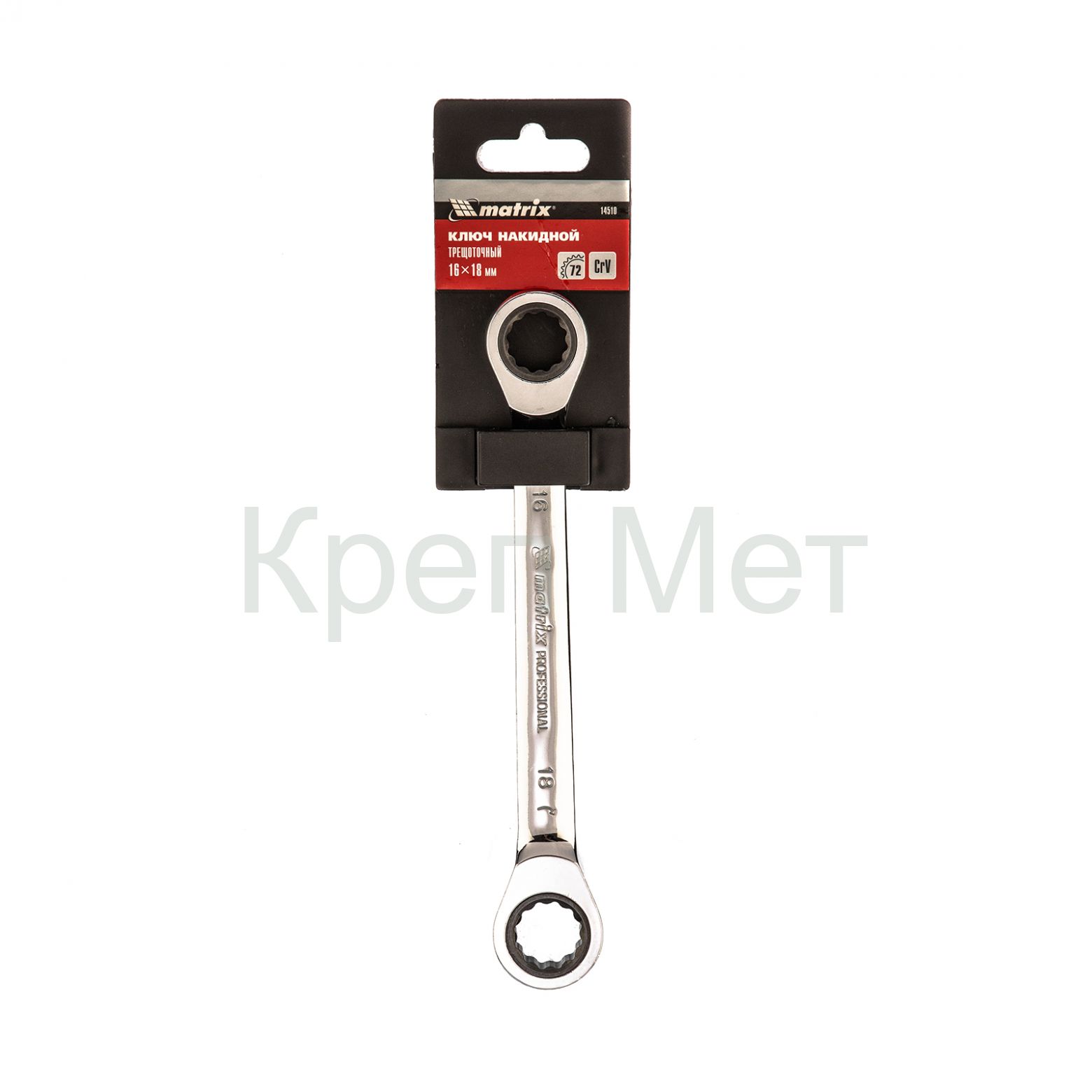 Ключ накидной трещоточный, 16 x 18 мм, CrV, зеркальный хром Matrix