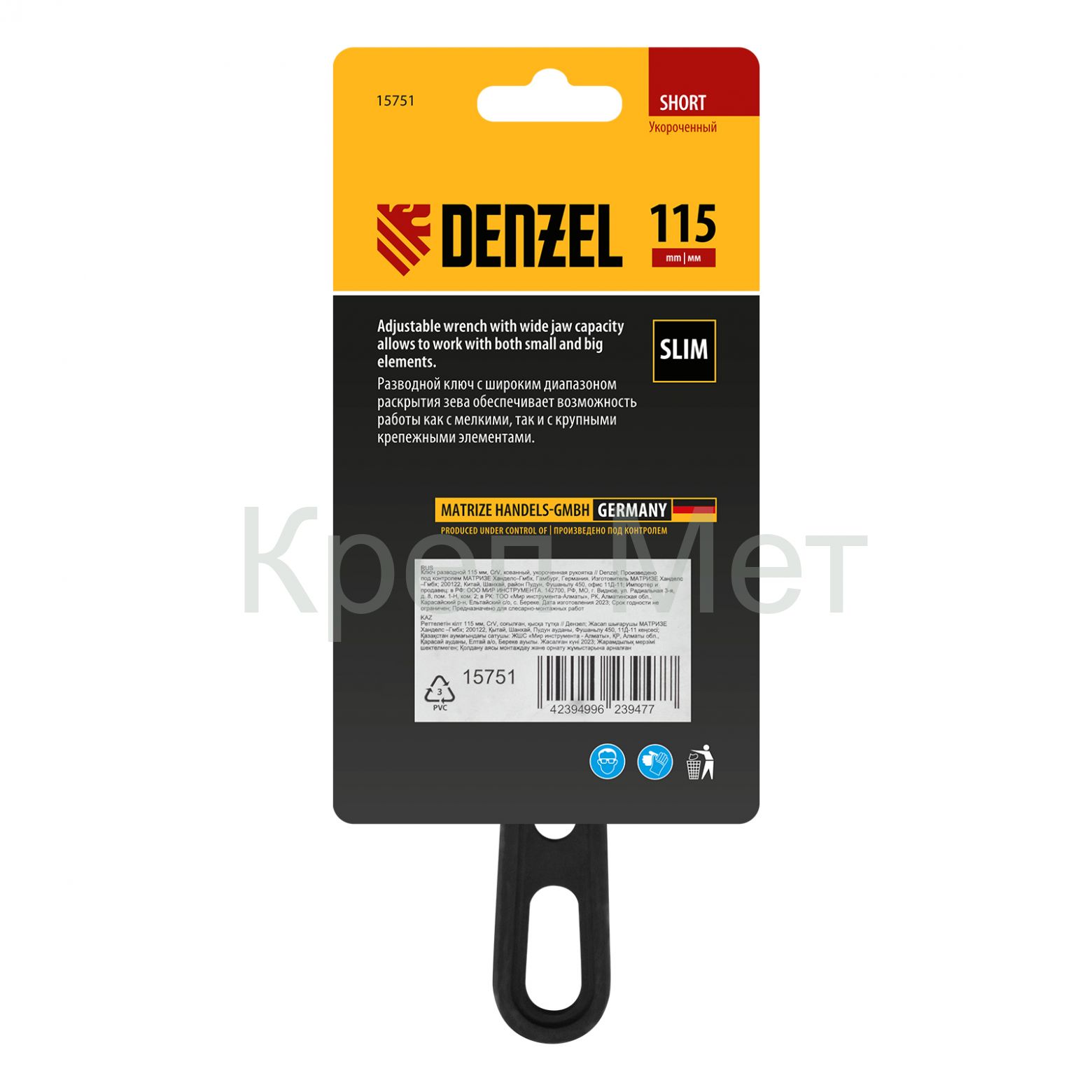 - Ключ разводной 115 мм, CrV, кованый, укороченная рукоятка Denzel