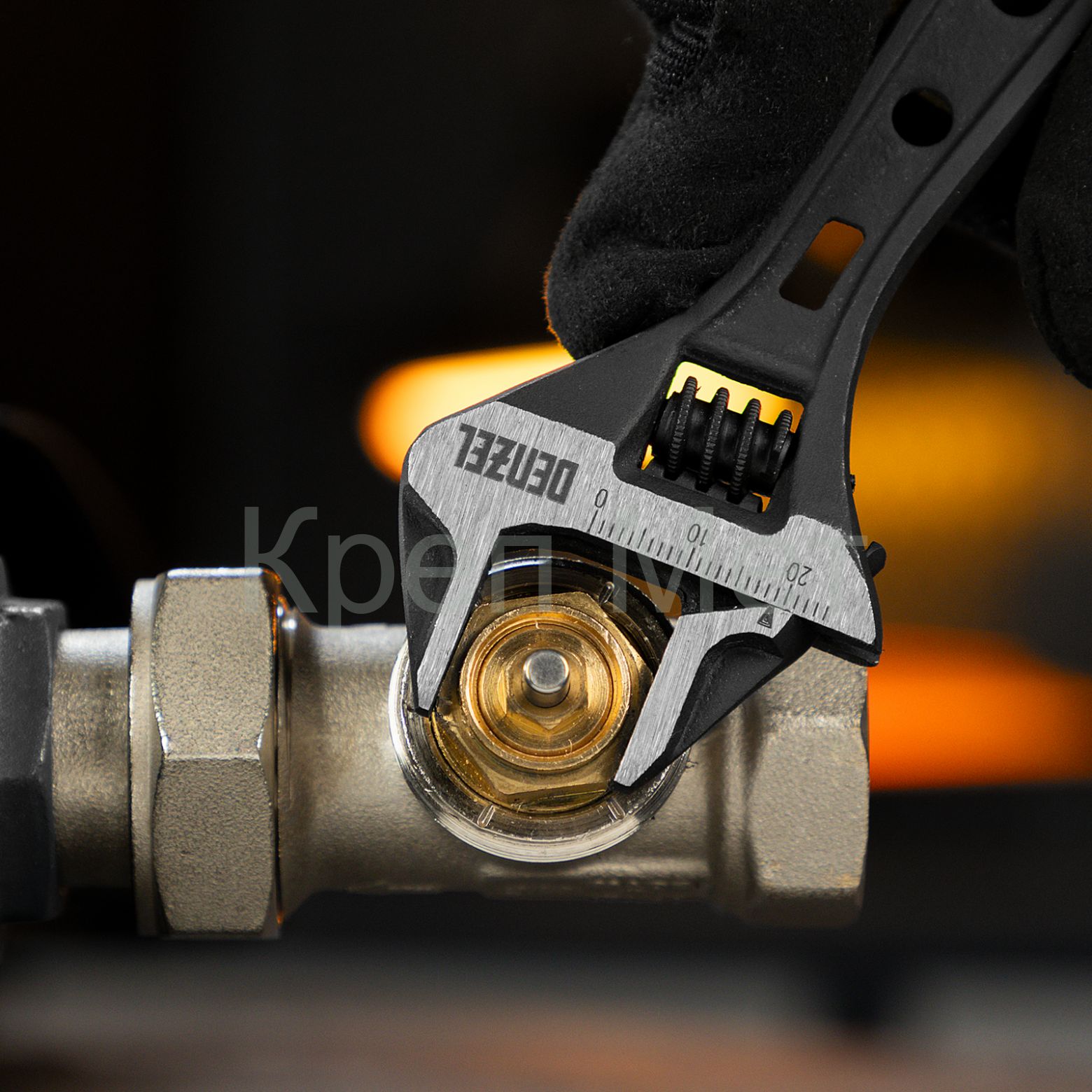 - Удобная эксплуатация — метрическая линейка на ключе помогает выставить нужный размах зева.