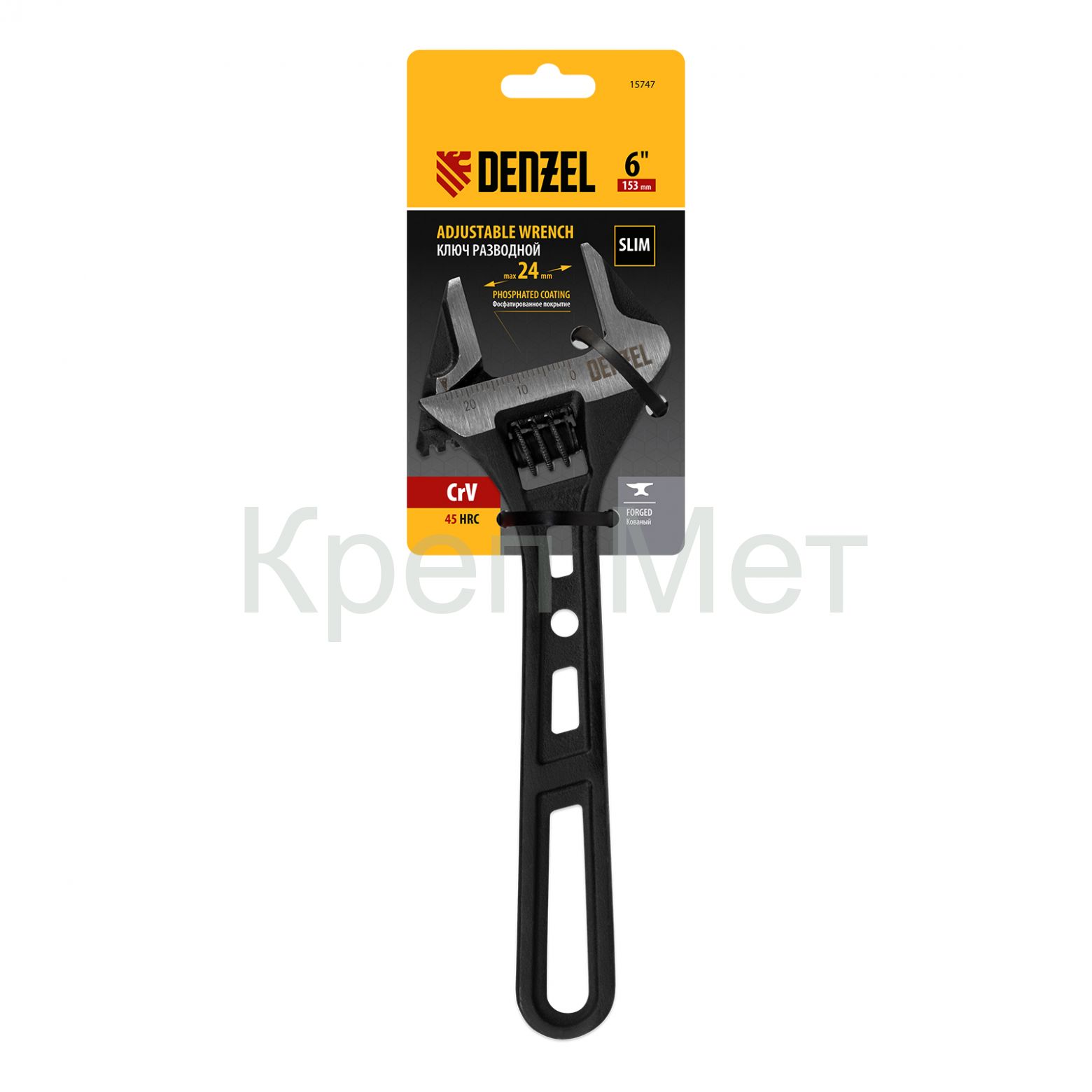 - Ключ разводной, 150 мм, CrV, кованый Denzel