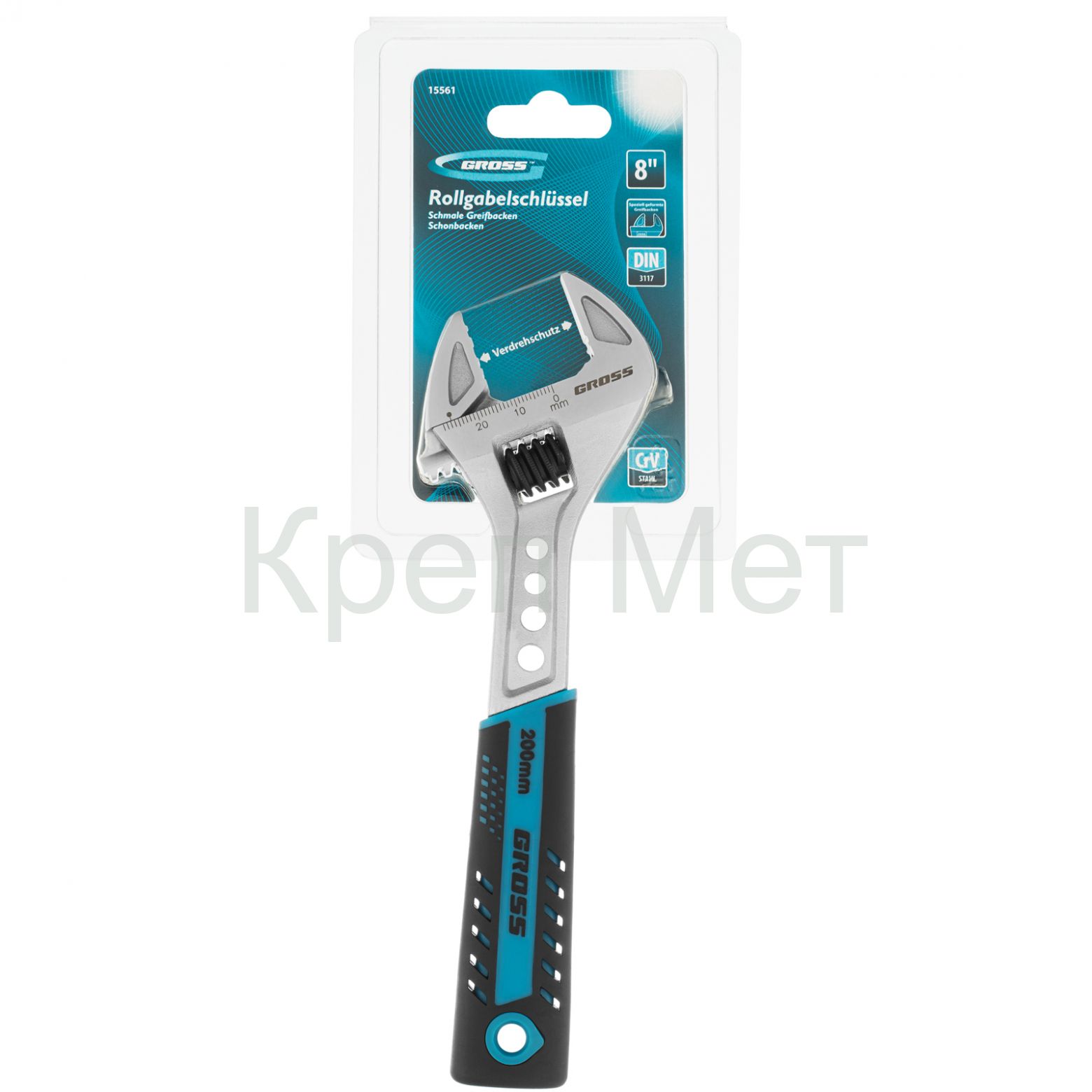 - Ключ разводной, 200 мм, CrV, двухкомпонентная ручка Gross