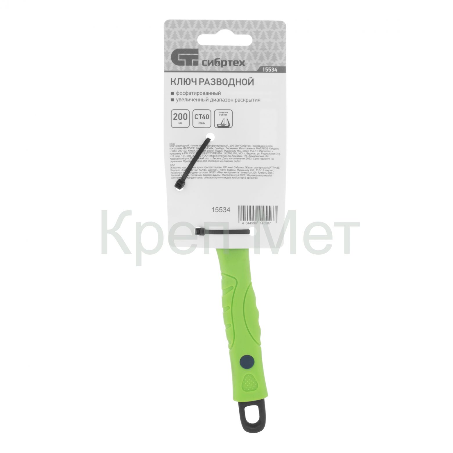 - Ключ разводной, 200 мм, тонкие губки, фосфатированый Сибртех