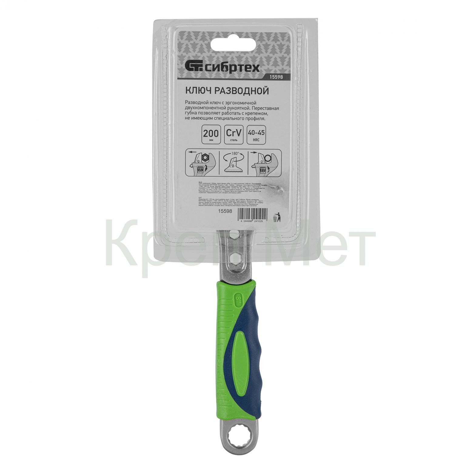 - Ключ разводной, 200мм, переставная губка, 2-х комп.рукоятка Сибртех