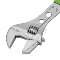 Разводной ключ Сибртех 15599 длиной 250 мм, с переставной губкой и двухкомпонентной рукояткой, предназначен для выполнения монтажных работ. Позволяет справляться с болтами разного размера и способен заменить целый арсенал гаечных ключей. Переставная губка с зазубринами позволяет использовать ключ для работы предметами без специального профиля, например, трубами.