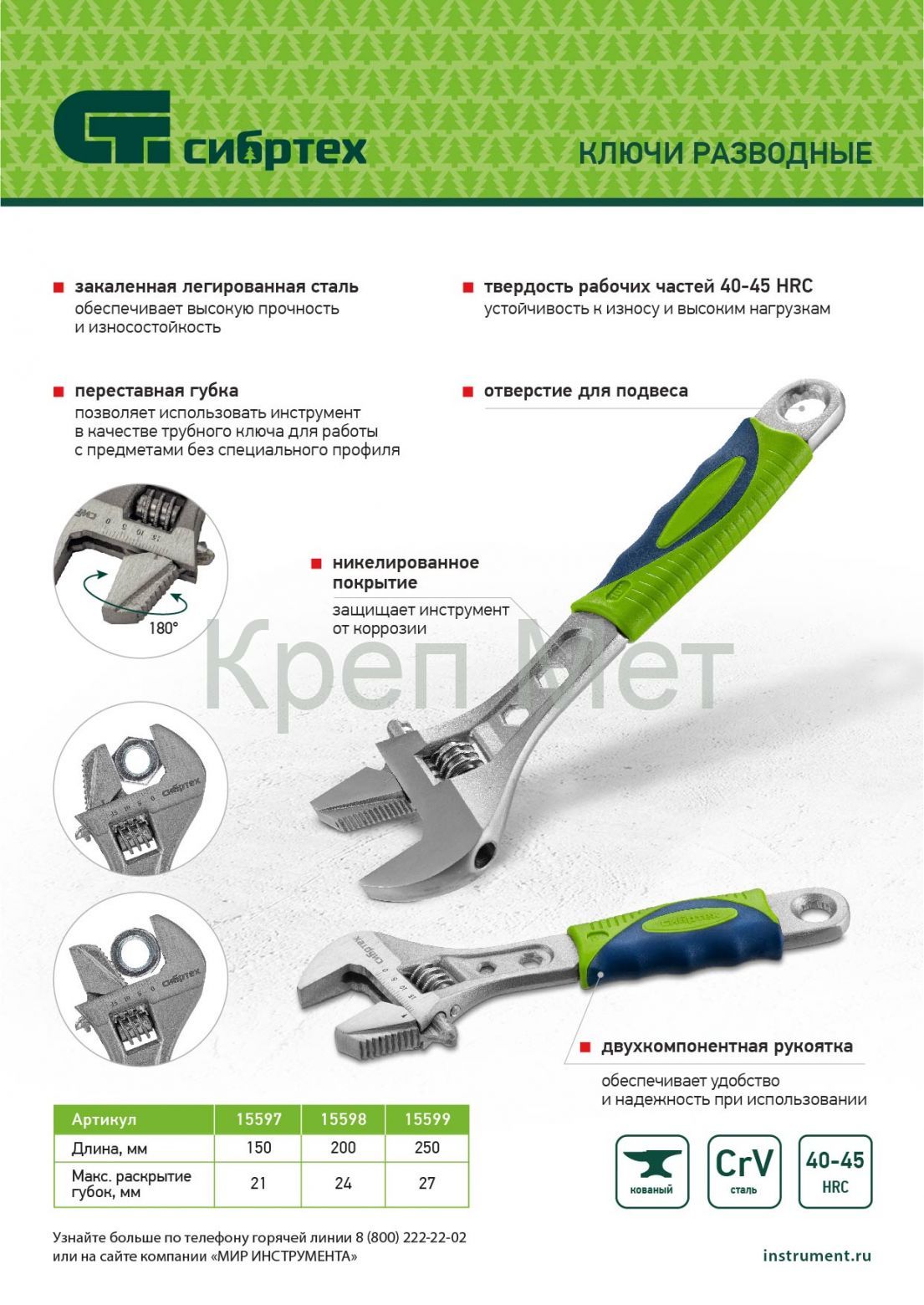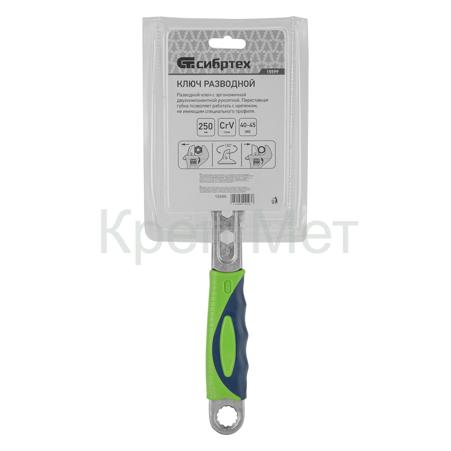 Ключ разводной, 250мм, переставная губка, 2 - х комп.рукоятка Сибртех
