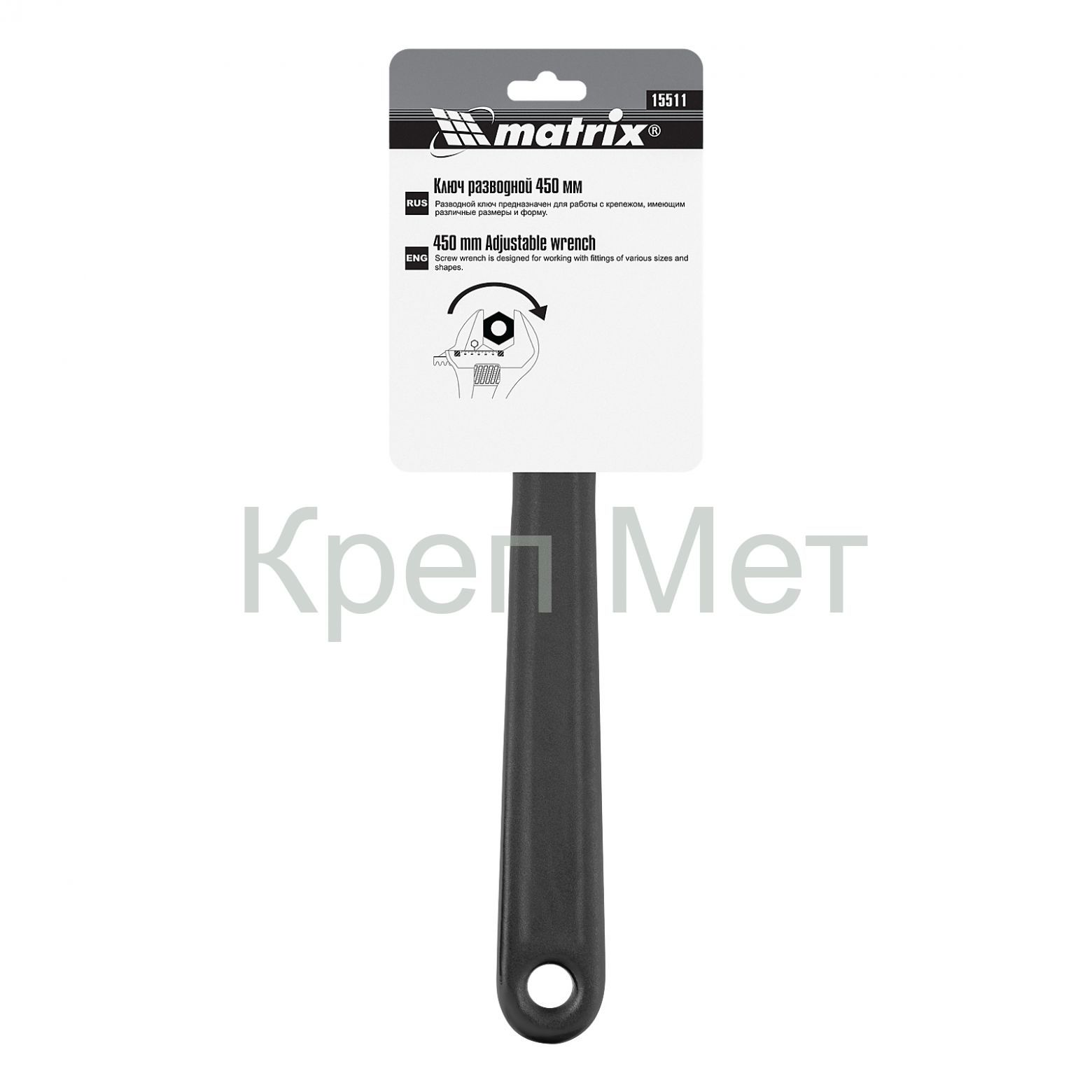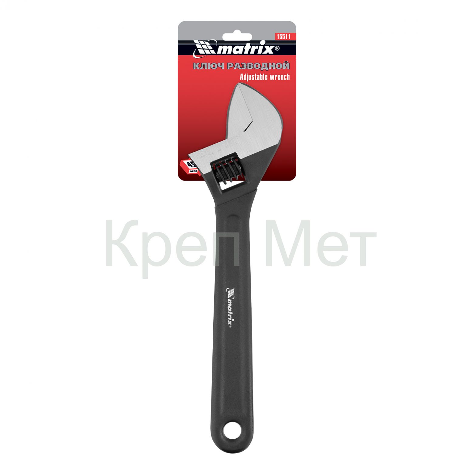 Разводной ключ Matrix 15511 длиной 450 мм используется для монтажа и демонтажа крепежных элементов. Заменяет собой целый комплект обычных гаечных ключей. Губки можно разводить на точно заданное расстояние, что позволяет захватывать детали различного размера. Разводной ключ пригодится для проведения слесарных, сантехнических, ремонтных работ.