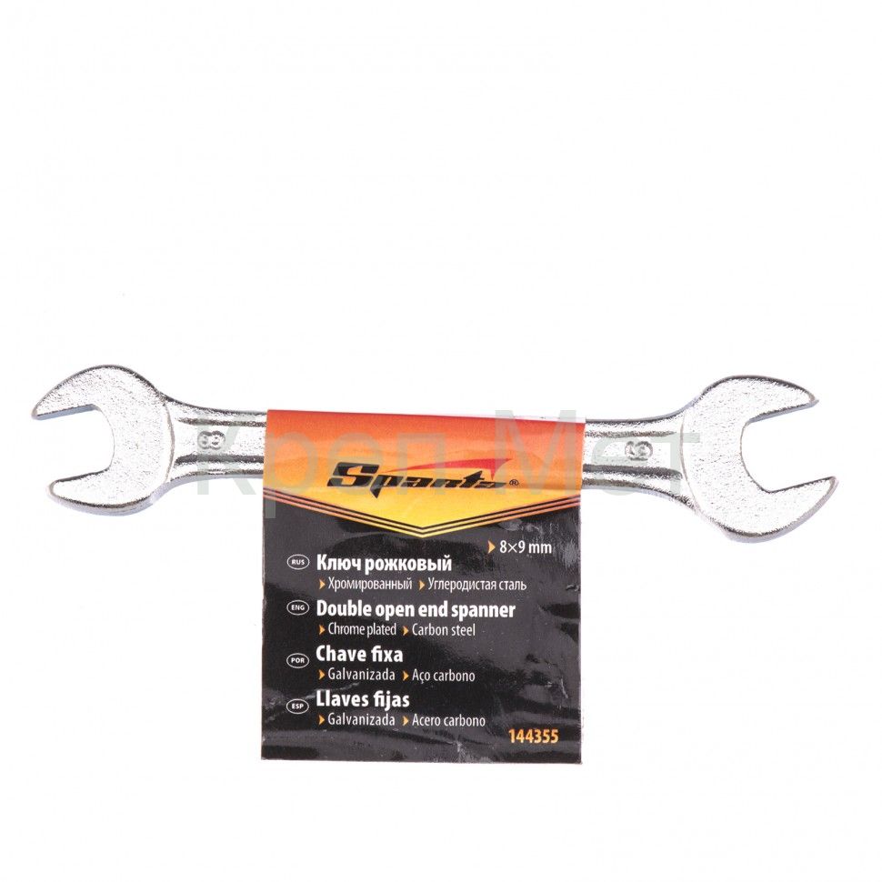 Ключ рожковый, 8 х 9 мм, хромированный Sparta