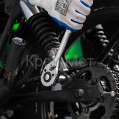- Надежная фиксация — шариковый замок крепко удерживает торцевую головку, поэтому она не соскочит во время работы.