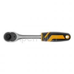 Ключ-трещотка Denzel 14033 из стали CrV, с присоединительным квадратом 1/2", с быстрым сбросом и храповым механизмом с 90 зубьями, предназначен для установки торцевых головок, а также адаптеров и удлинителей с посадочным размером соответствующего размера. Угол поворота трещотки составляет всего 4°, что упрощает работу в труднодоступных местах. Инструмент будет полезен в сервисном центре, на СТО, а также пригодится дома или в поездке.