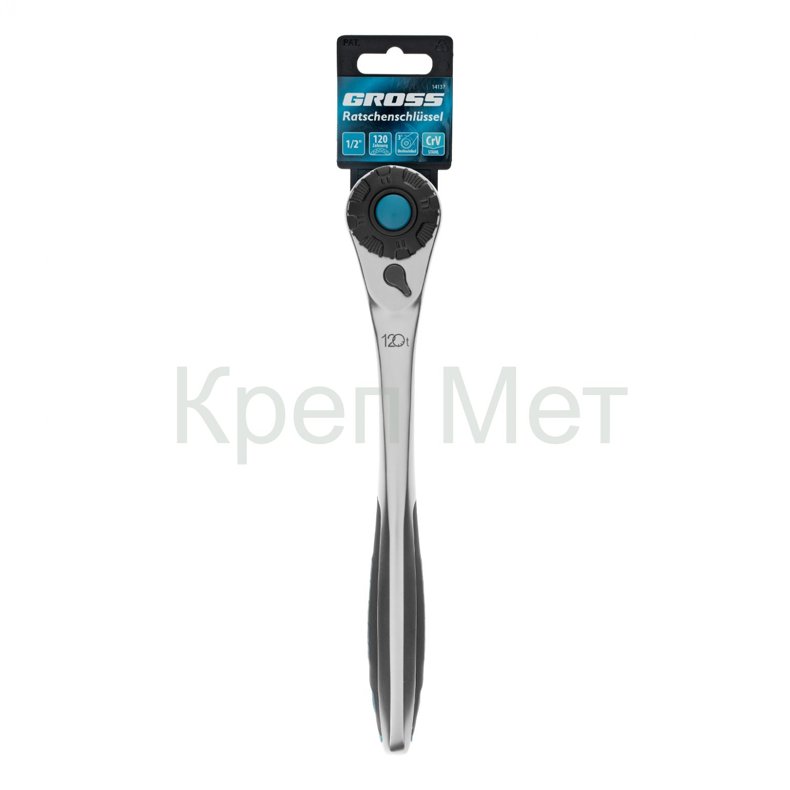 Ключ-трещотка 1/2", CrV, 120 зубьев, с быстрым сбросом, цельнометаллический, хром Gross