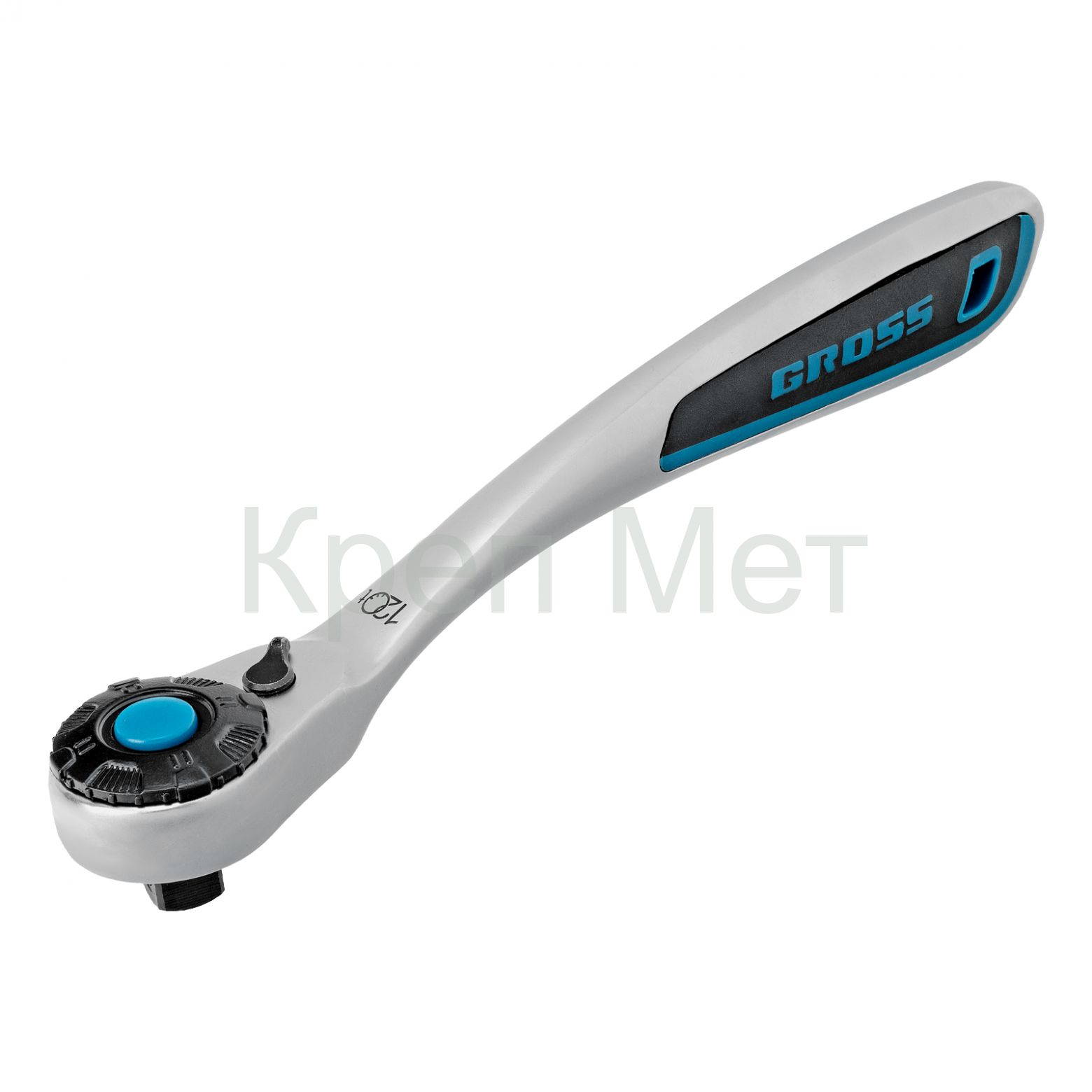 - Ключ-трещотка 1/2", CrV, 120 зубьев, с быстрым сбросом, цельнометаллический, хром Gross