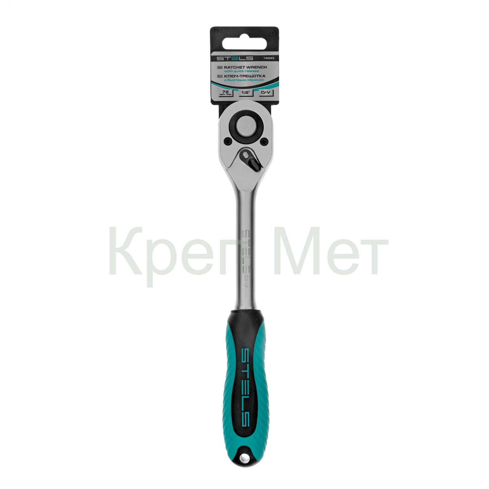 - Ключ-трещотка 1/2", CrV, 72 зуба, с быстрым сбросом, матовый хром Stels