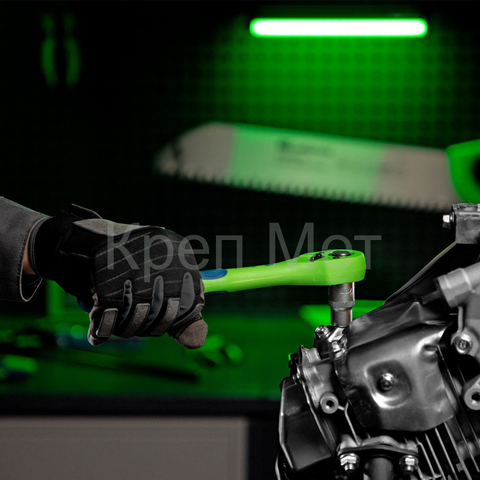 - Удобная работа в ограниченном пространстве — шаг трещотки составляет всего 5°.