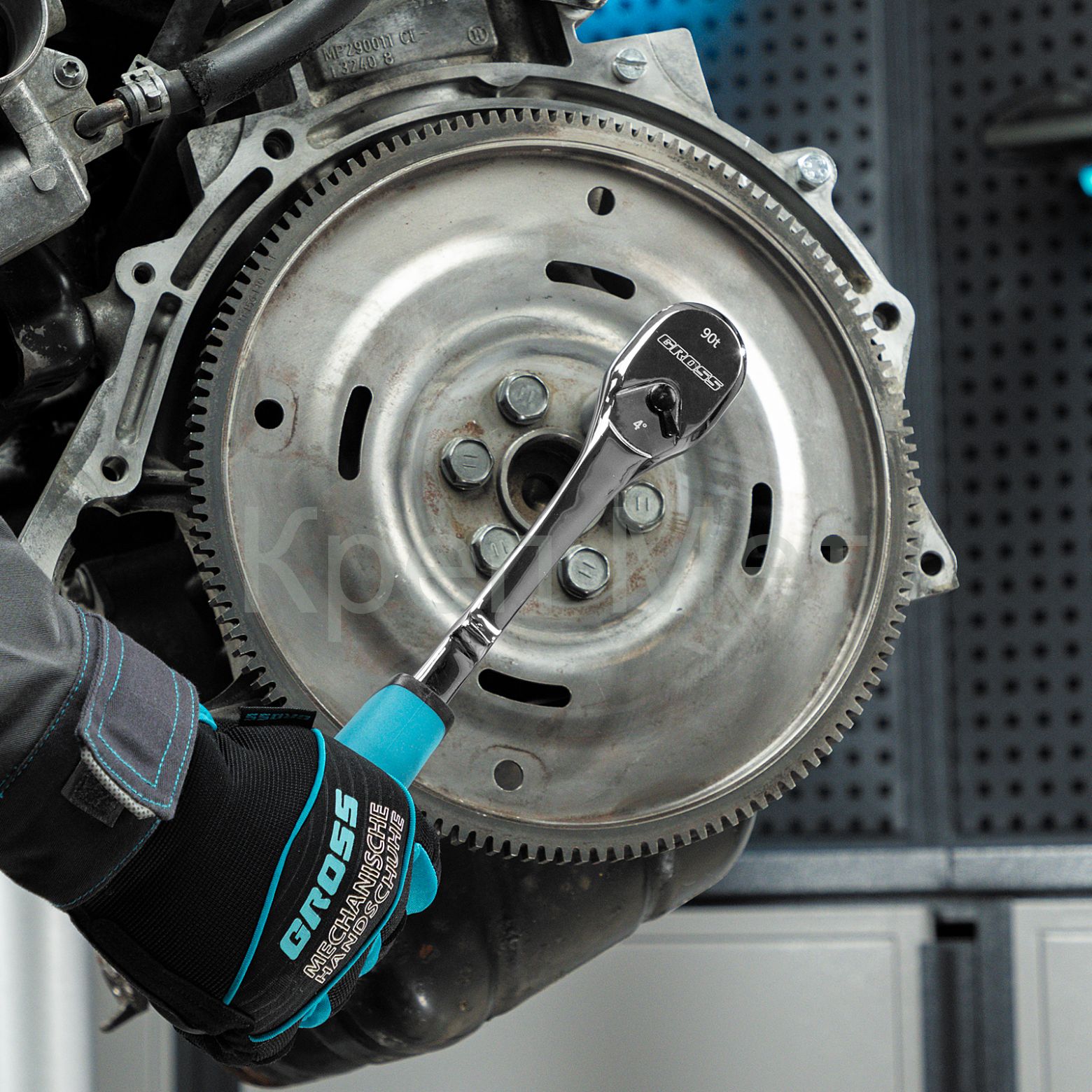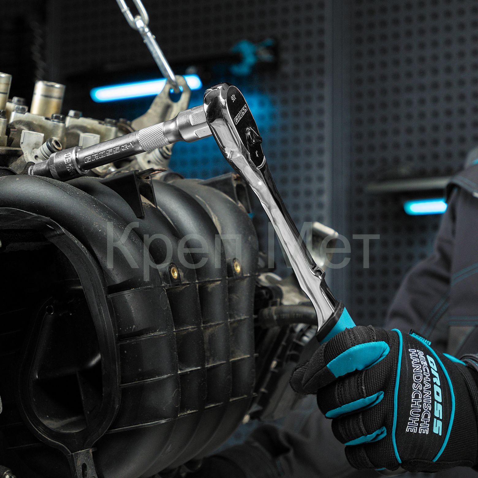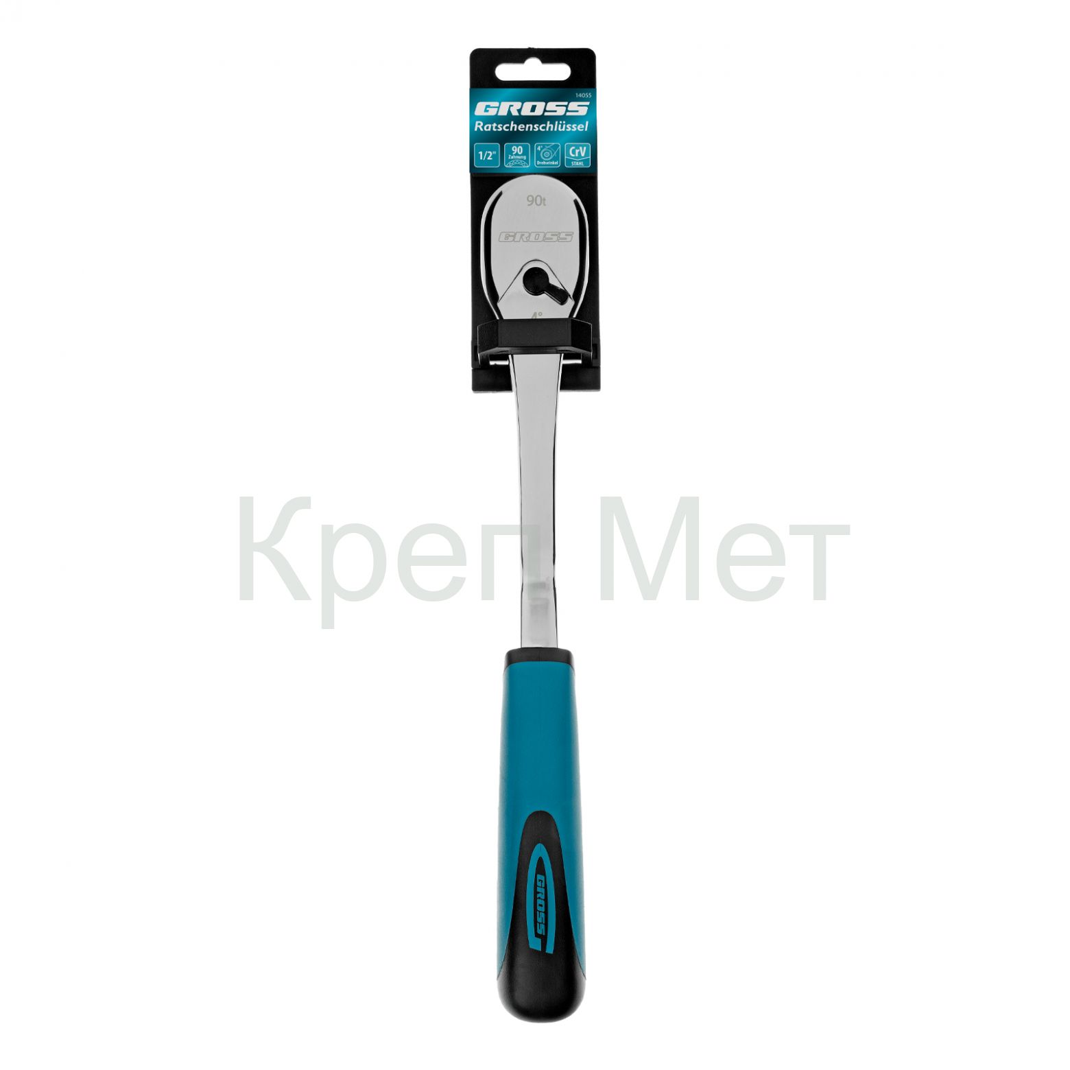 - Ключ-трещотка 1/2", CrV, 90 зубьев, усиленный, хром Gross