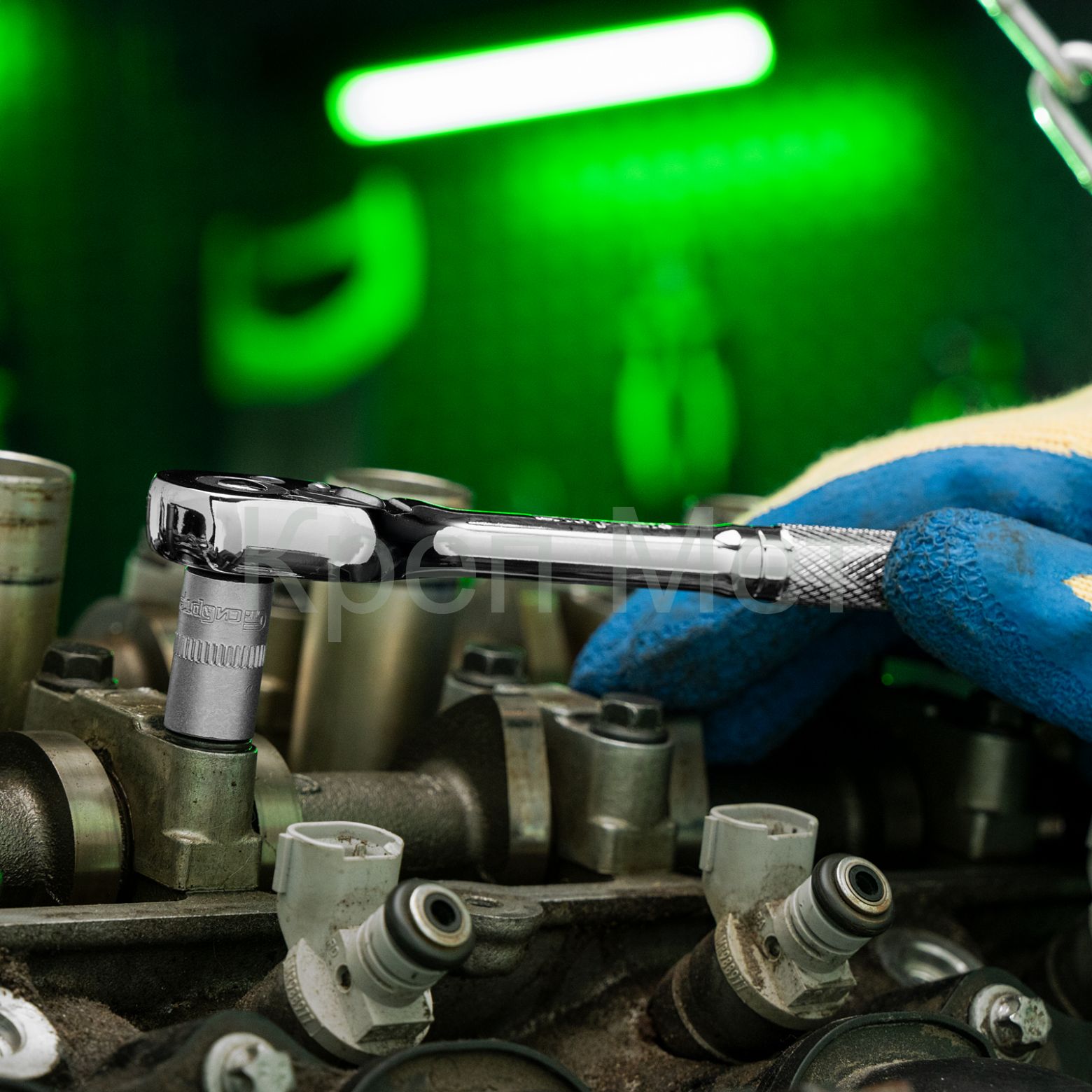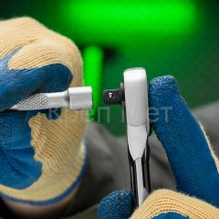 - Надежная фиксация — шариковый замок крепко удерживает торцевую головку, поэтому она не соскочит во время работы.