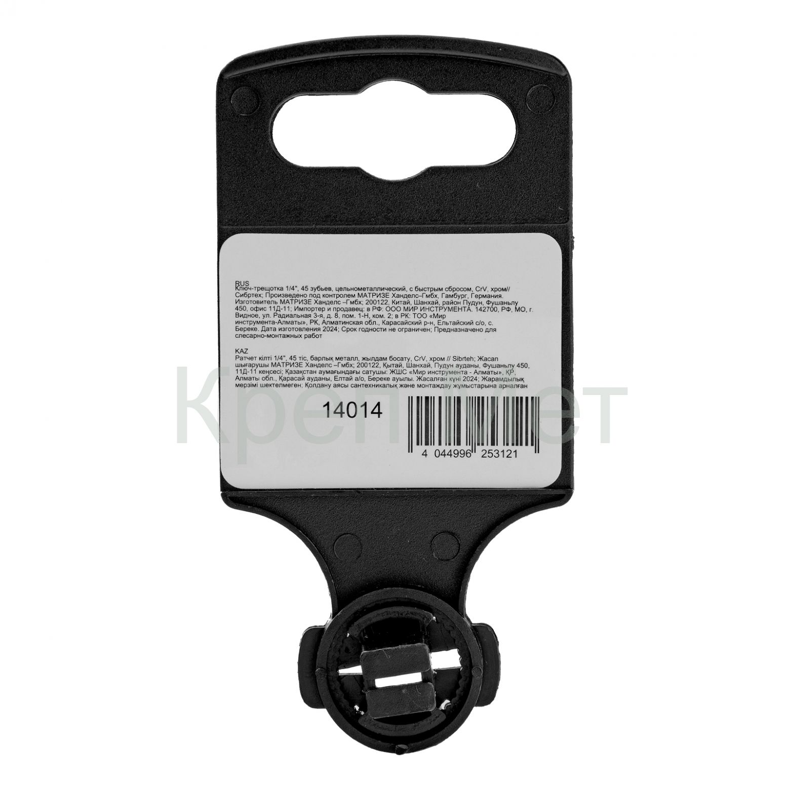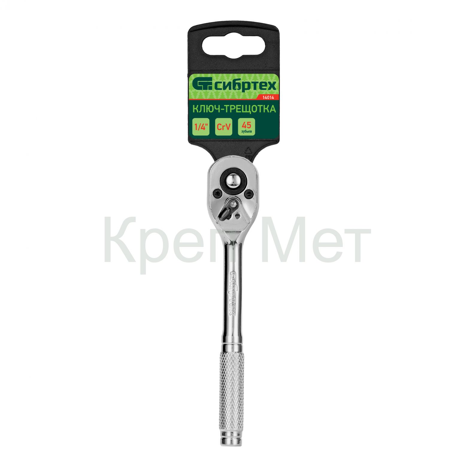 - Ключ-трещотка 1/4", 45 зубьев, цельнометаллический, с быстрым сбросом, CrV, хром Сибртех
