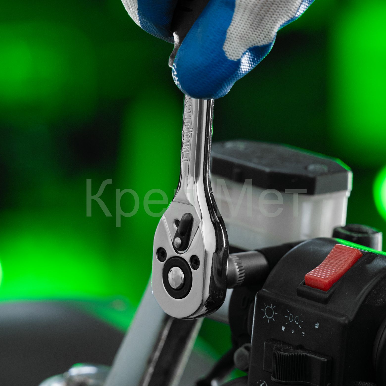 - Функция реверса — при помощи переключателя с металлическим флажком можно одним движением изменить направление вращения трещотки.