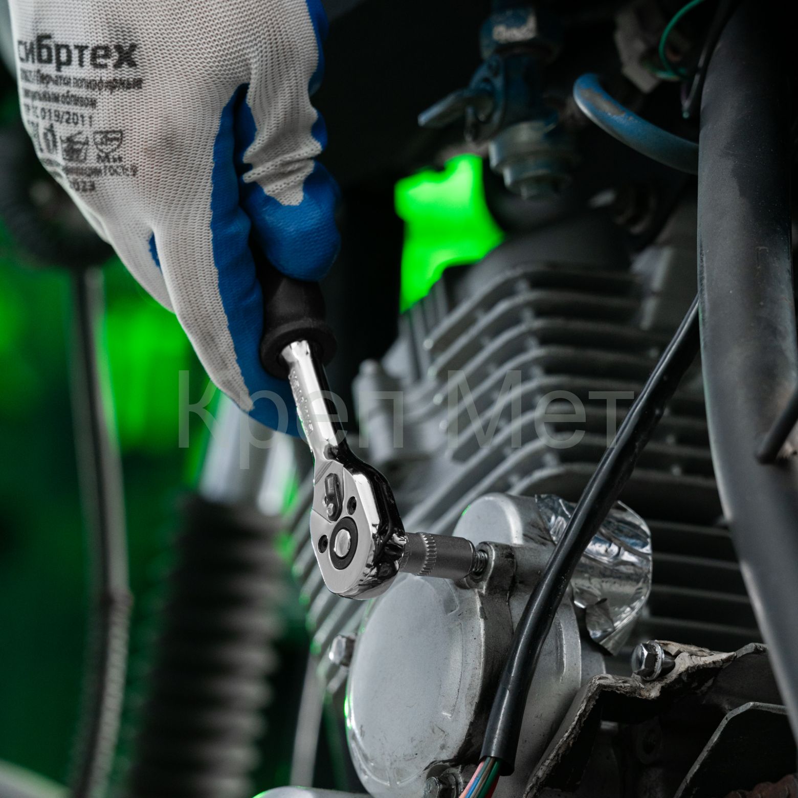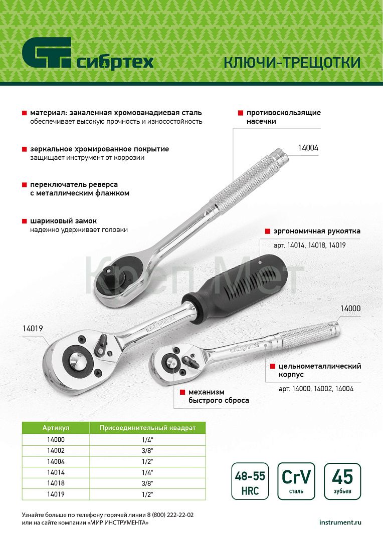 - Ключ-трещотка 1/4", 45 зубьев, с быстрым сбросом, CrV, хром Сибртех