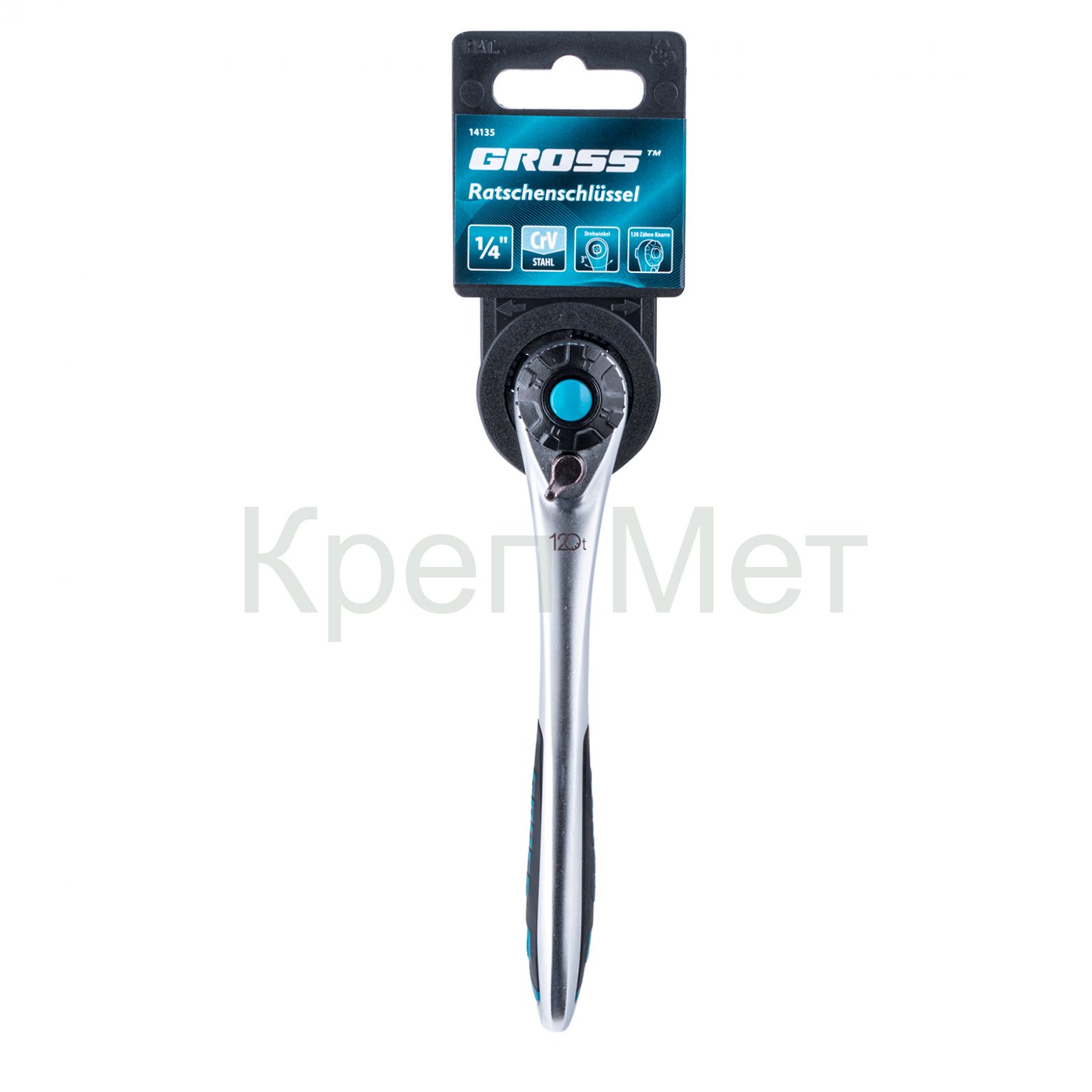 Ключ-трещотка 1/4", CrV, 120 зубьев, с быстрым сбросом, цельнометаллический, хром Gross