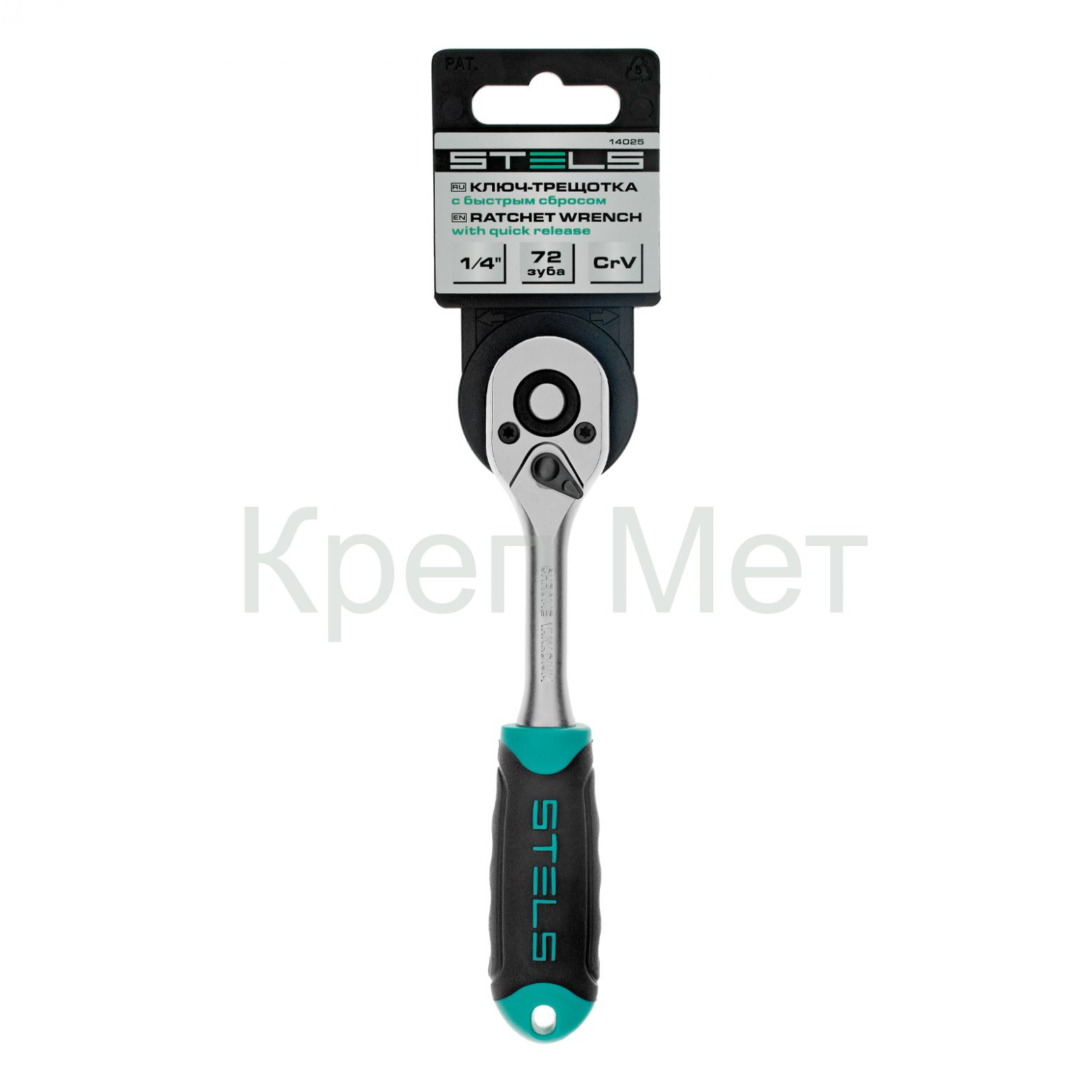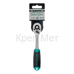 - Ключ-трещотка 1/4", CrV, 72 зуба, с быстрым сбросом, матовый хром Stels