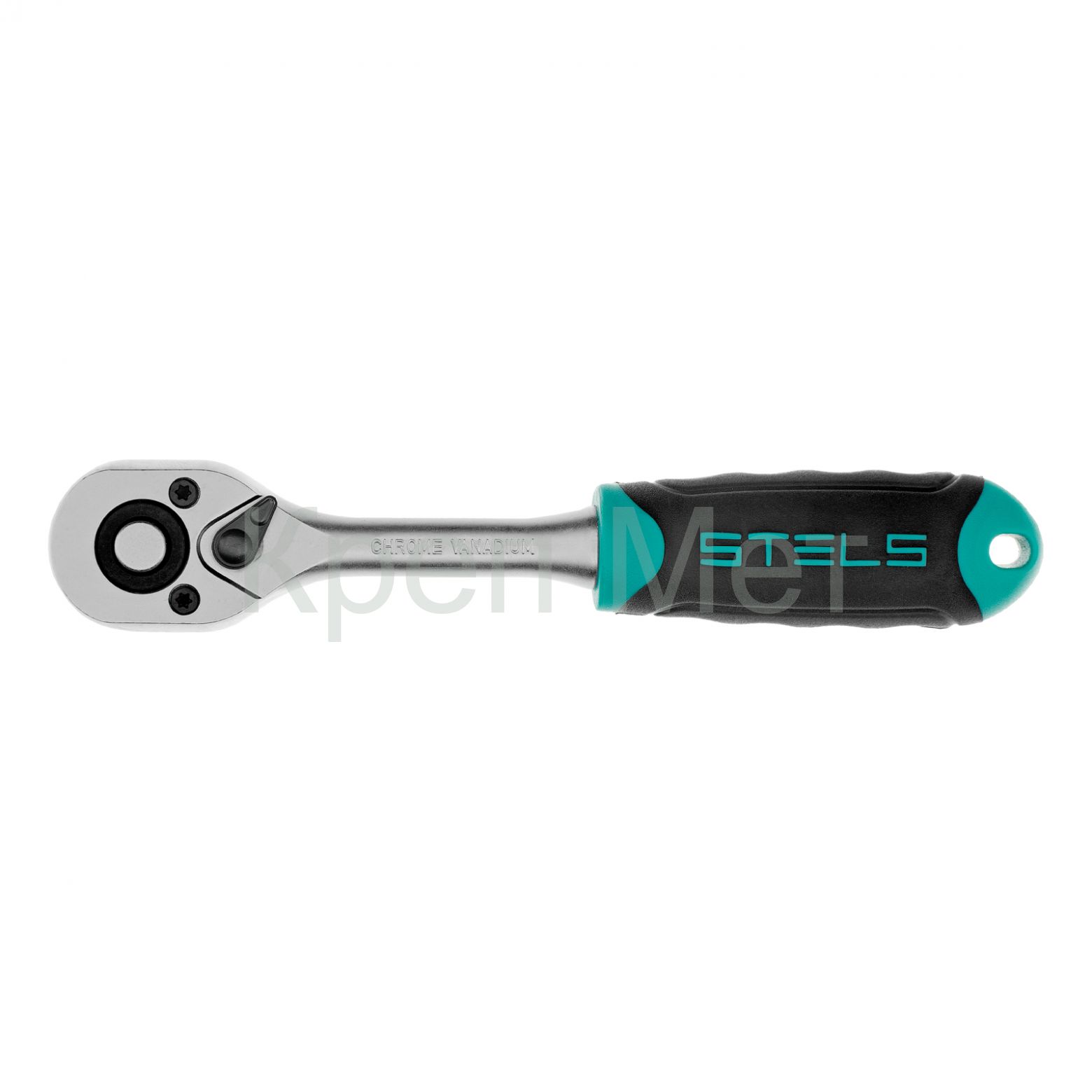 Ключ-трещотка 1/4", CrV, 72 зуба, с быстрым сбросом, матовый хром Stels