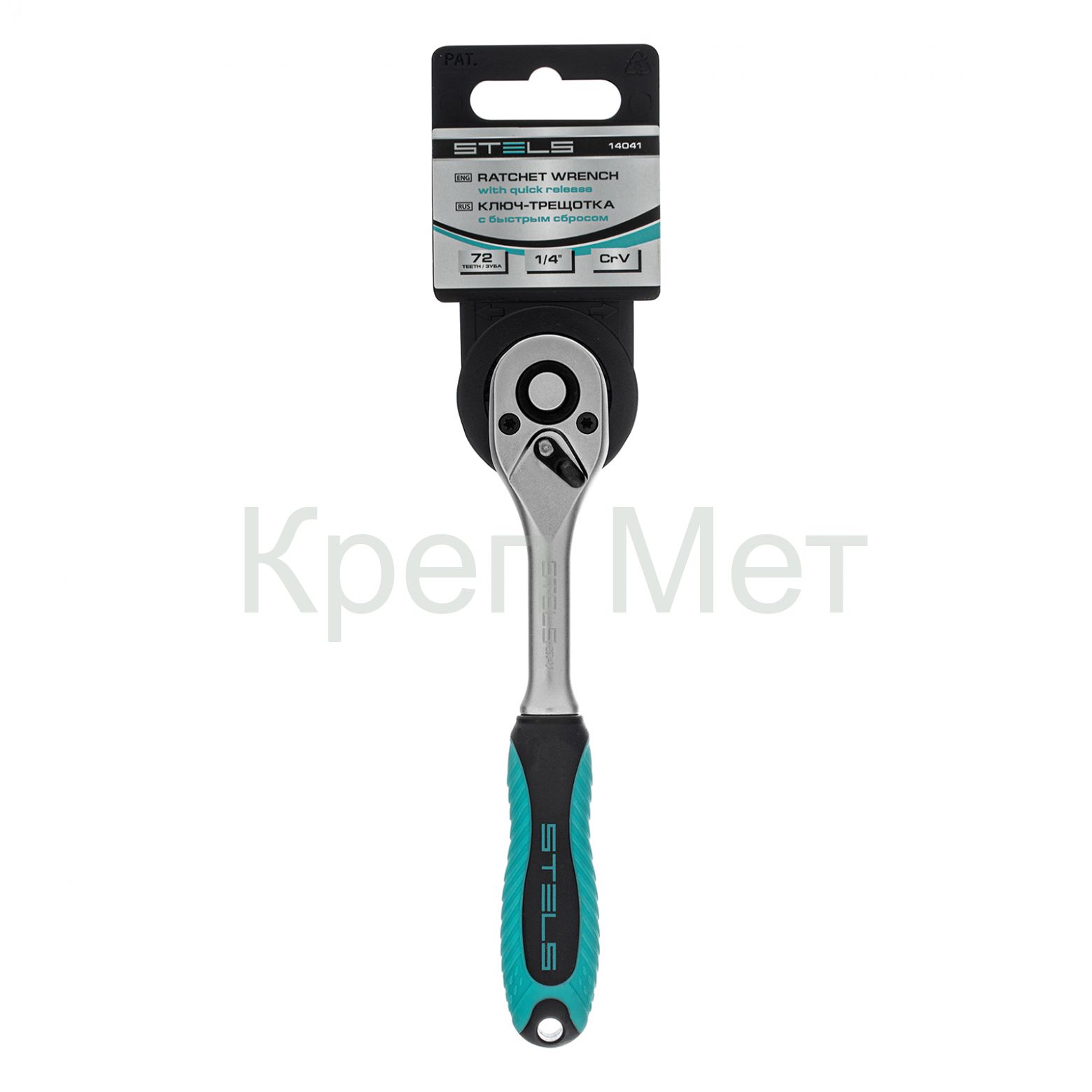 - Ключ-трещотка 1/4", CrV, 72 зуба, с быстрым сбросом, матовый хром Stels