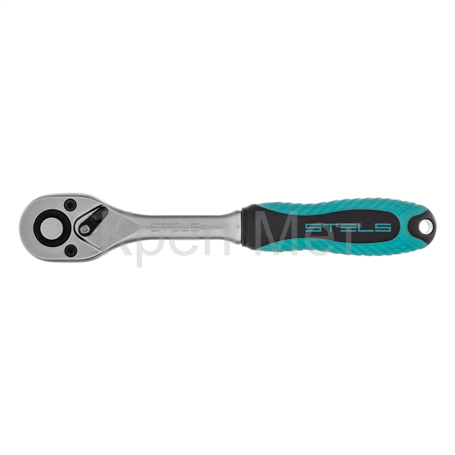 Ключ-трещотка 1/4", CrV, 72 зуба, с быстрым сбросом, матовый хром Stels