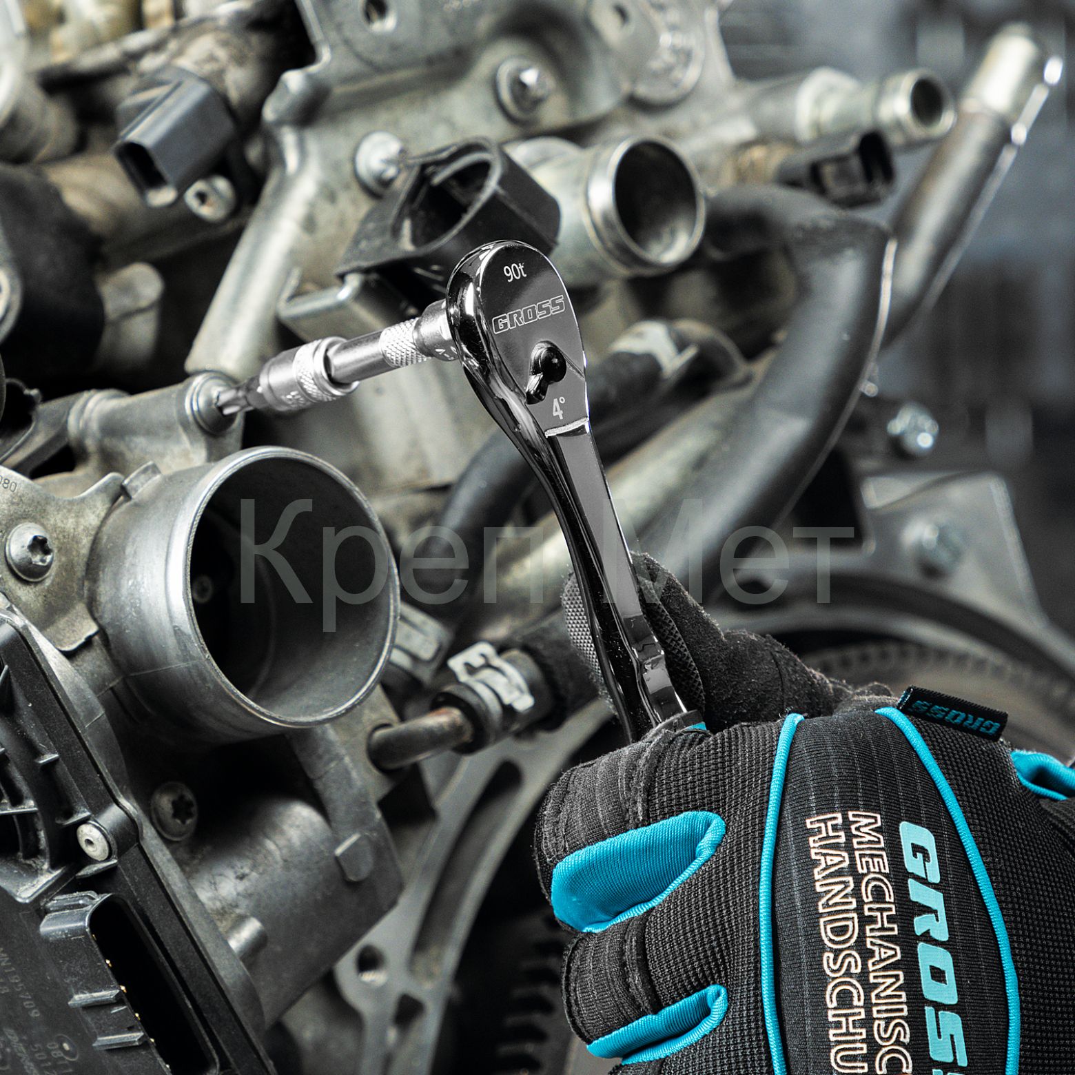 - Ключ-трещотка 1/4", CrV, 90 зубьев, усиленный, хром Gross