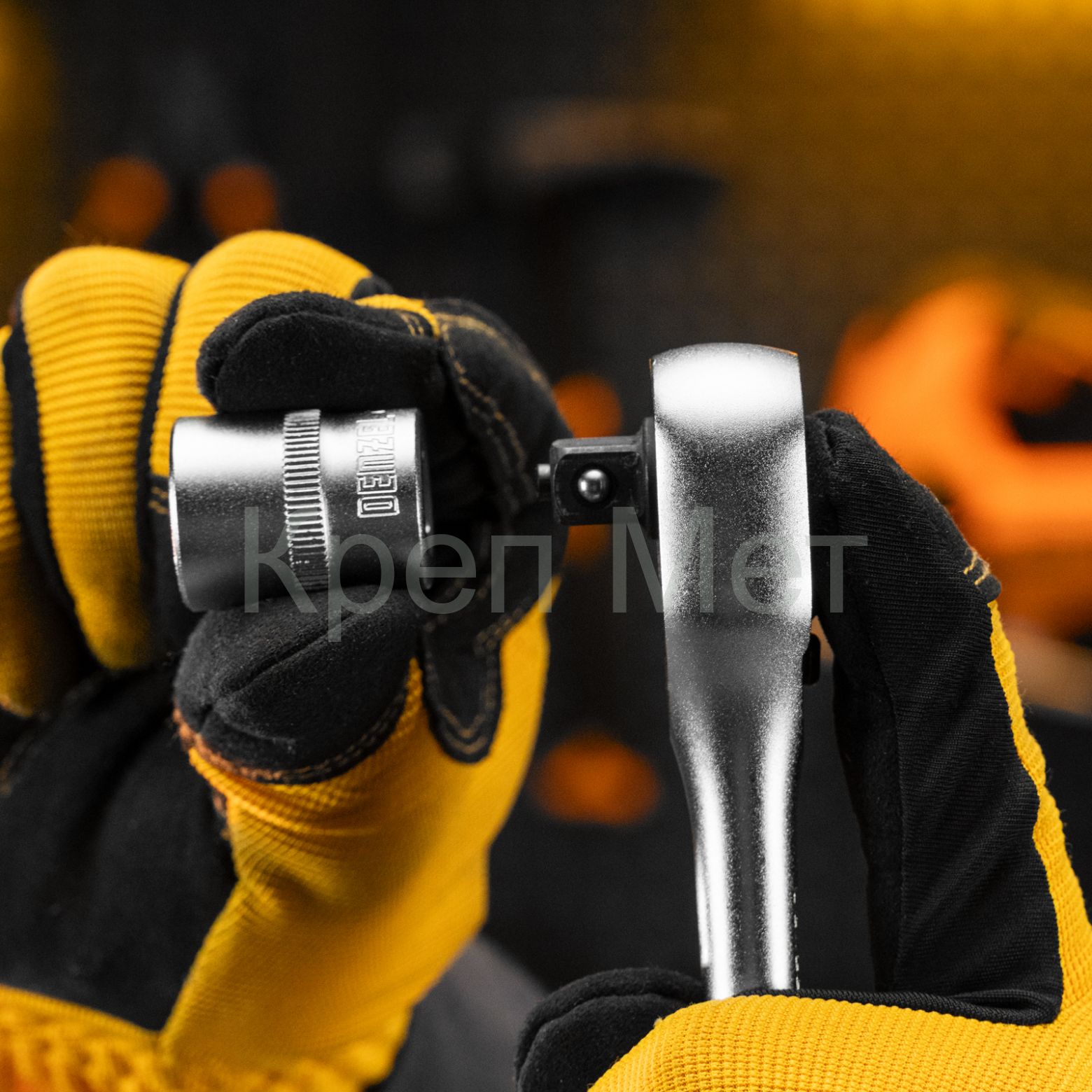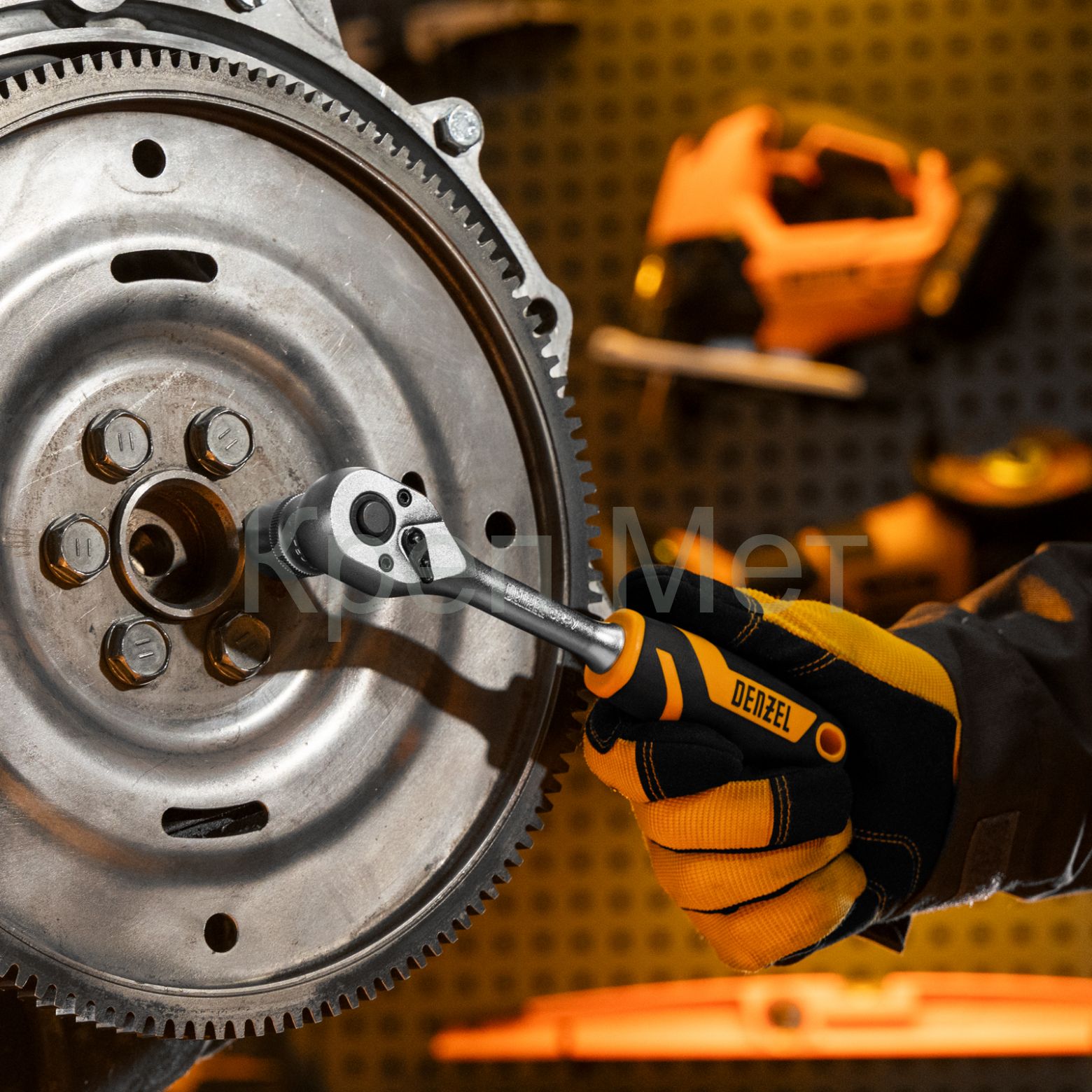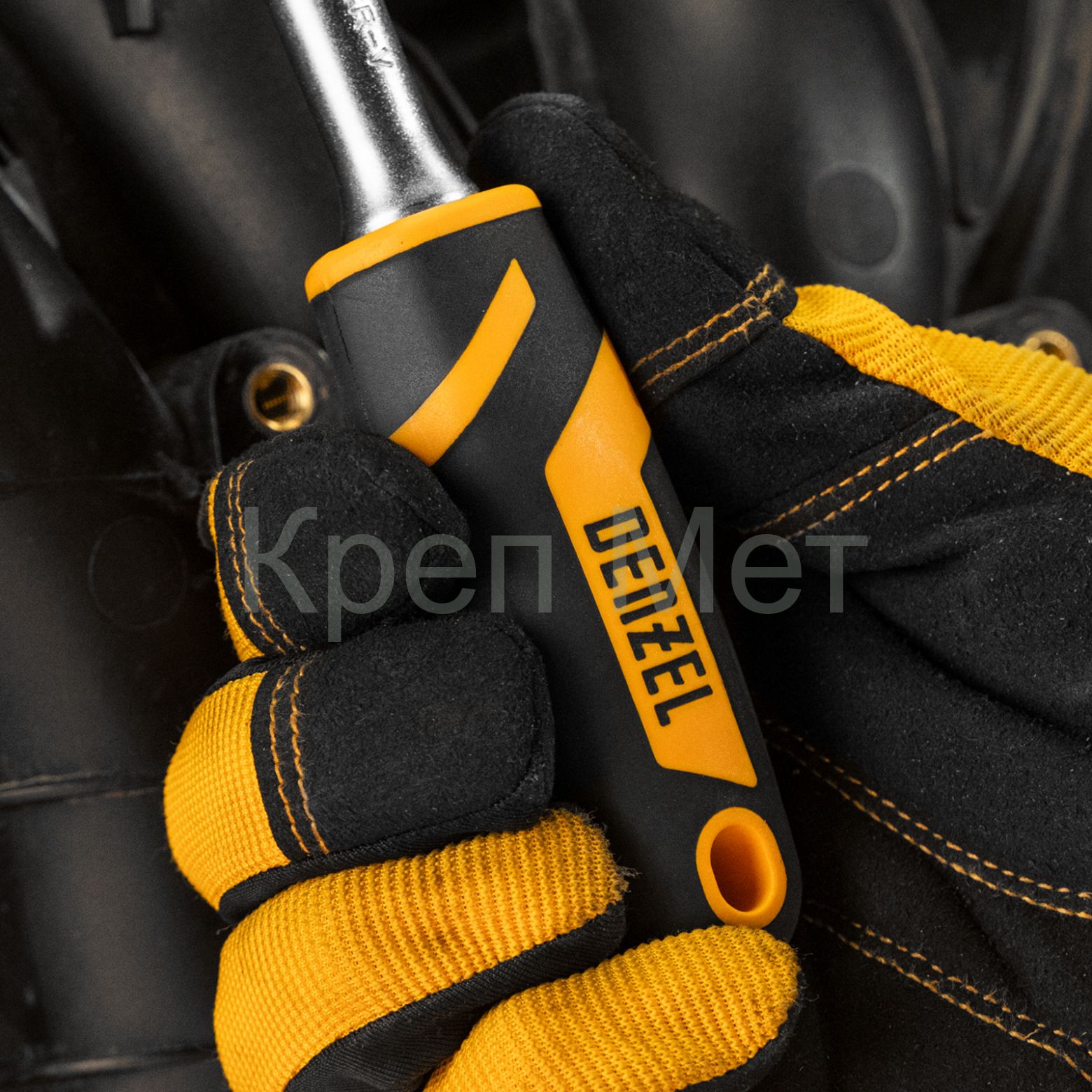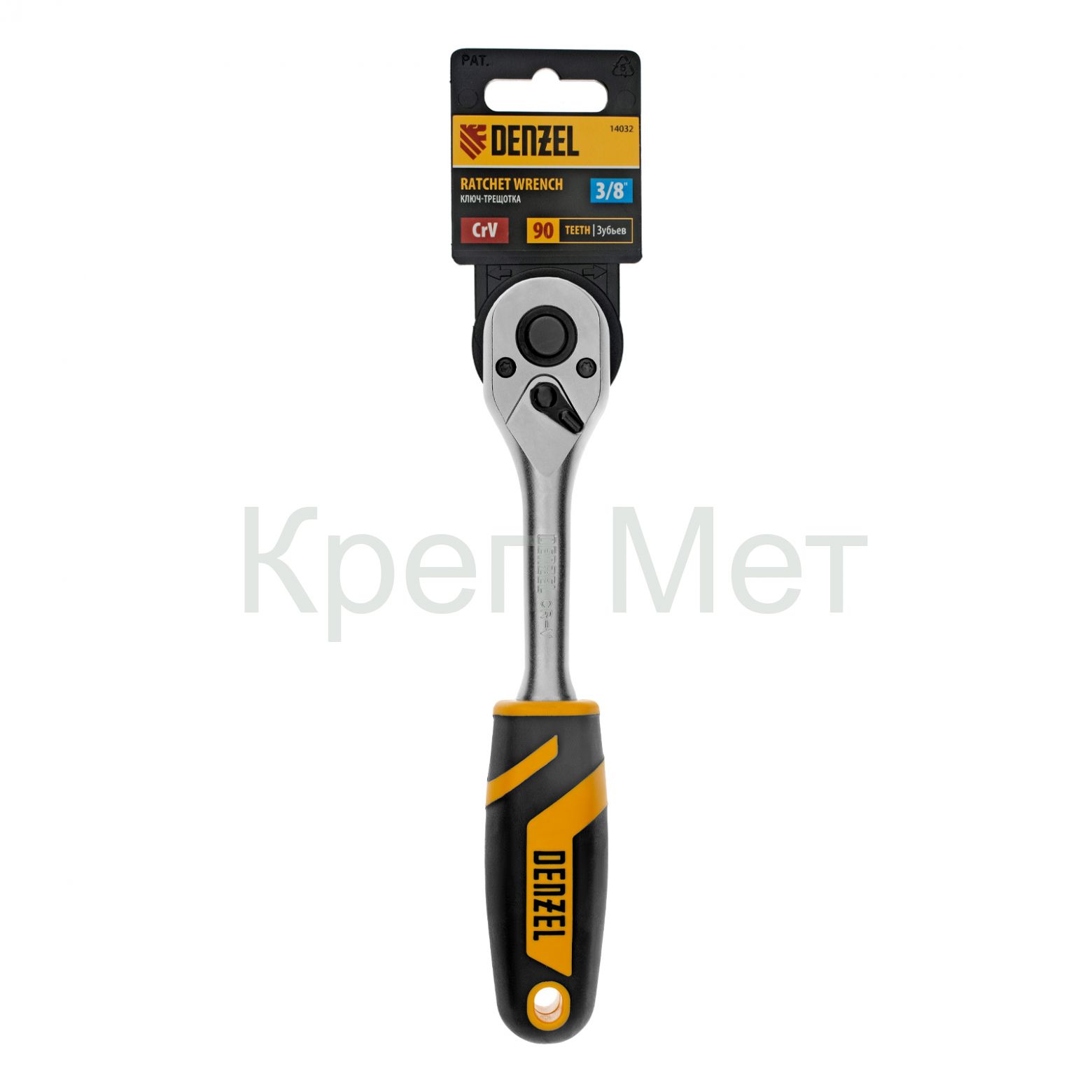 - Ключ-трещотка 3/8", 90 зубьев, с быстрым сбросом, CrV Denzel