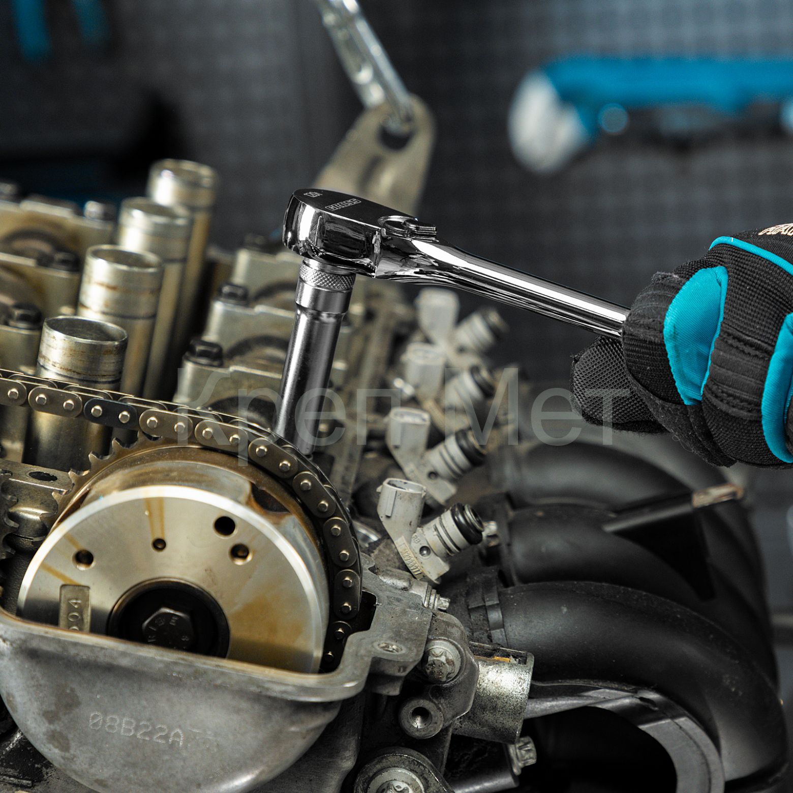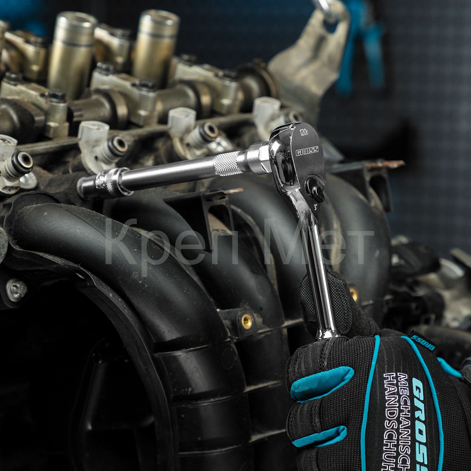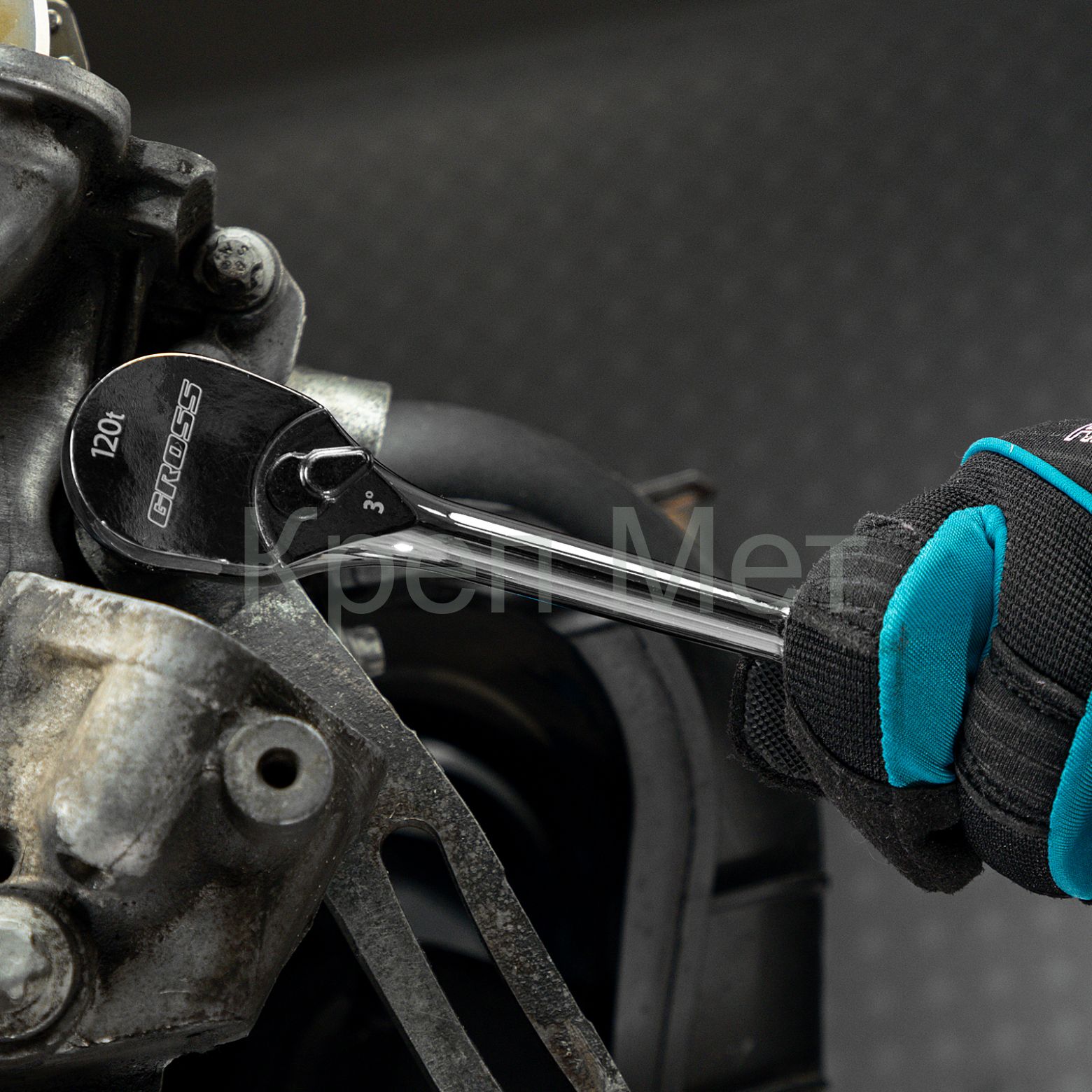 - Ключ-трещотка 3/8", CrV, 120 зубьев, цельнометаллический, хром Gross