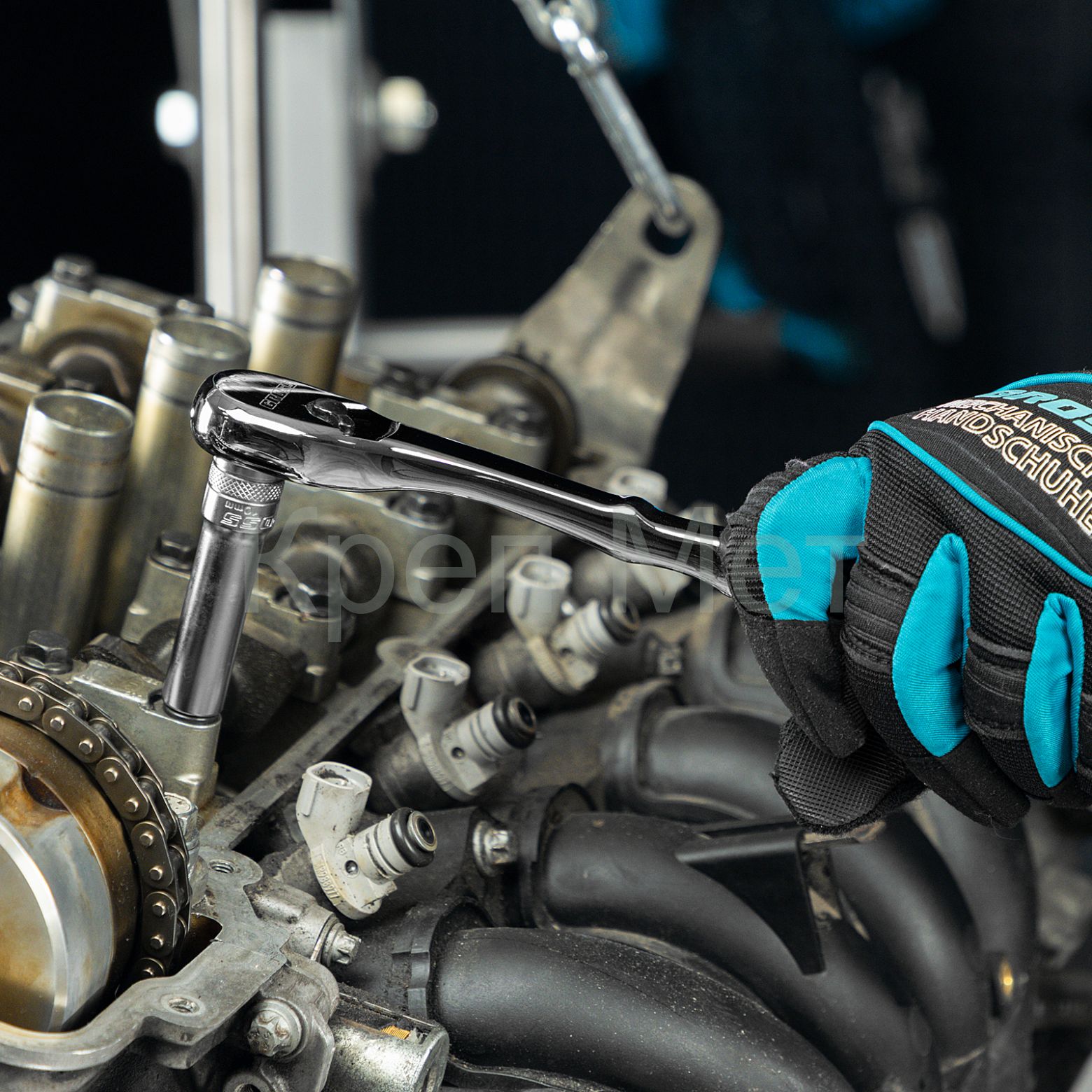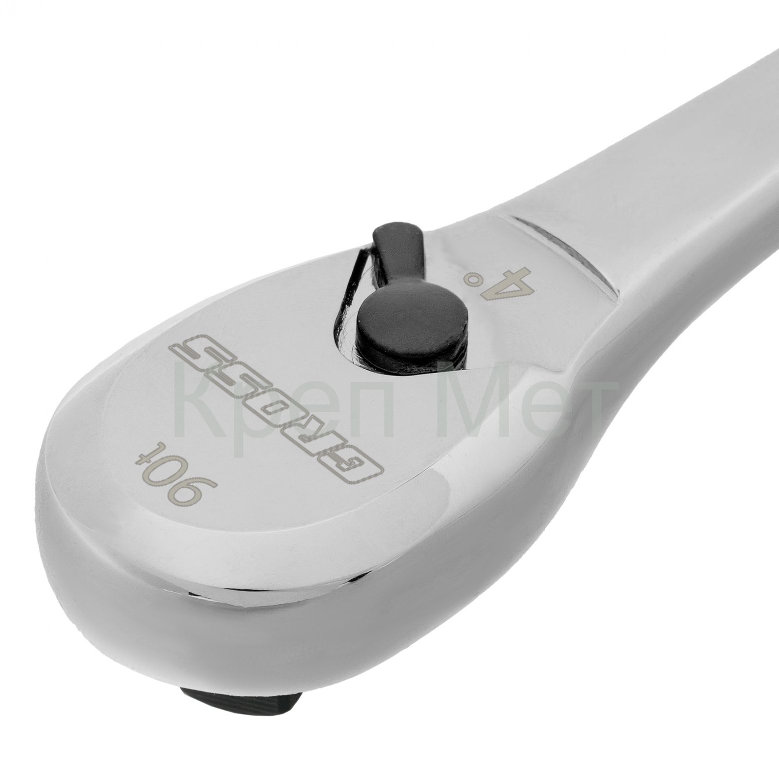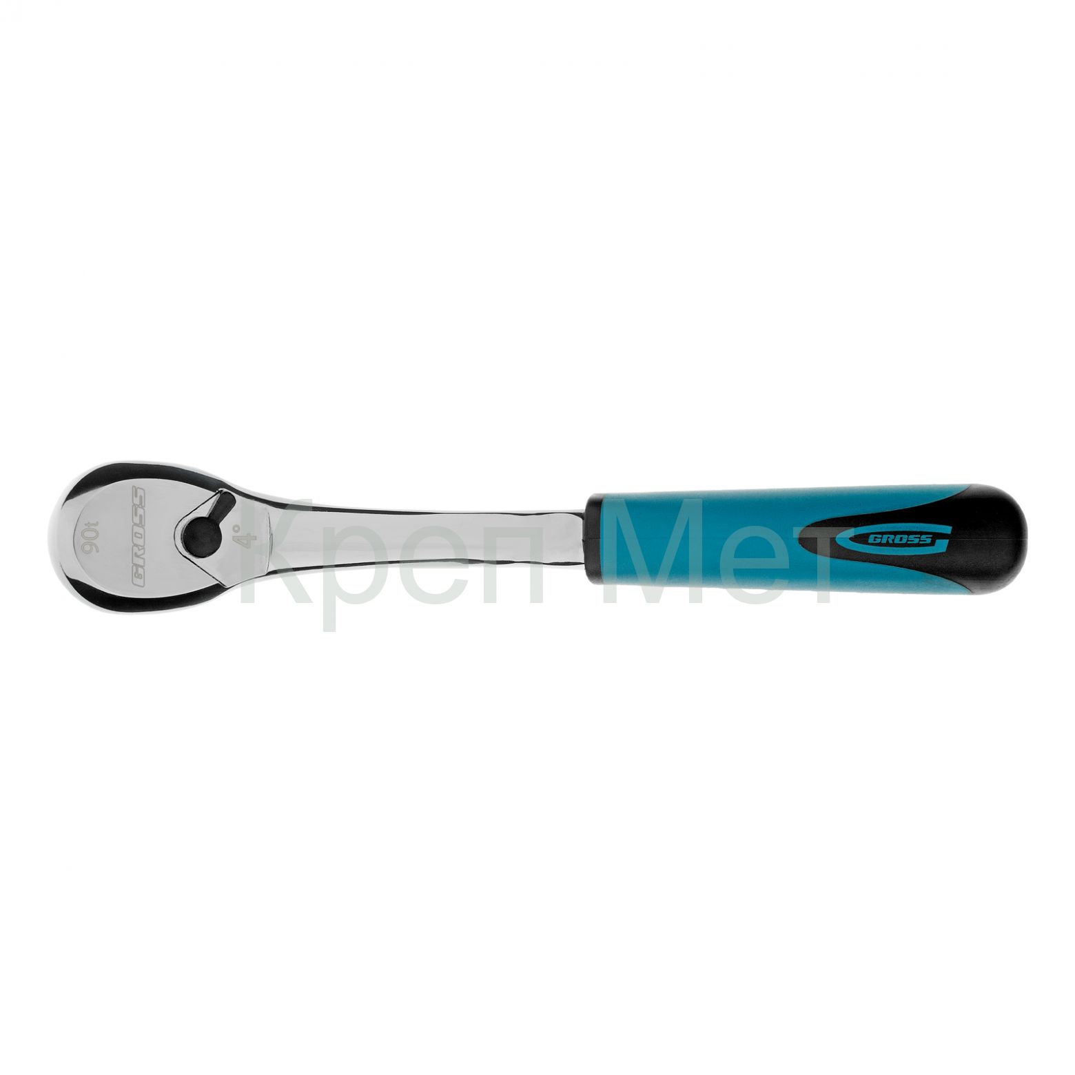 - Ключ-трещотка 3/8", CrV, 90 зубьев, усиленный, хром Gross