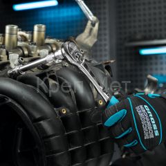 Усиленный ключ-трещотка Gross 14054 с присоединительным квадратом 3/8" оснащен храповым механизмом с 90 зубьями. Предназначен для установки торцевых головок, а также адаптеров и удлинителей с посадочным отверстием соответствующего размера. Шаг храпового механизма составляет 4°, поэтому инструмент оптимален для использования в труднодоступных местах. Будет полезен в сервисном центре, на СТО, а также пригодится дома или в поездке.