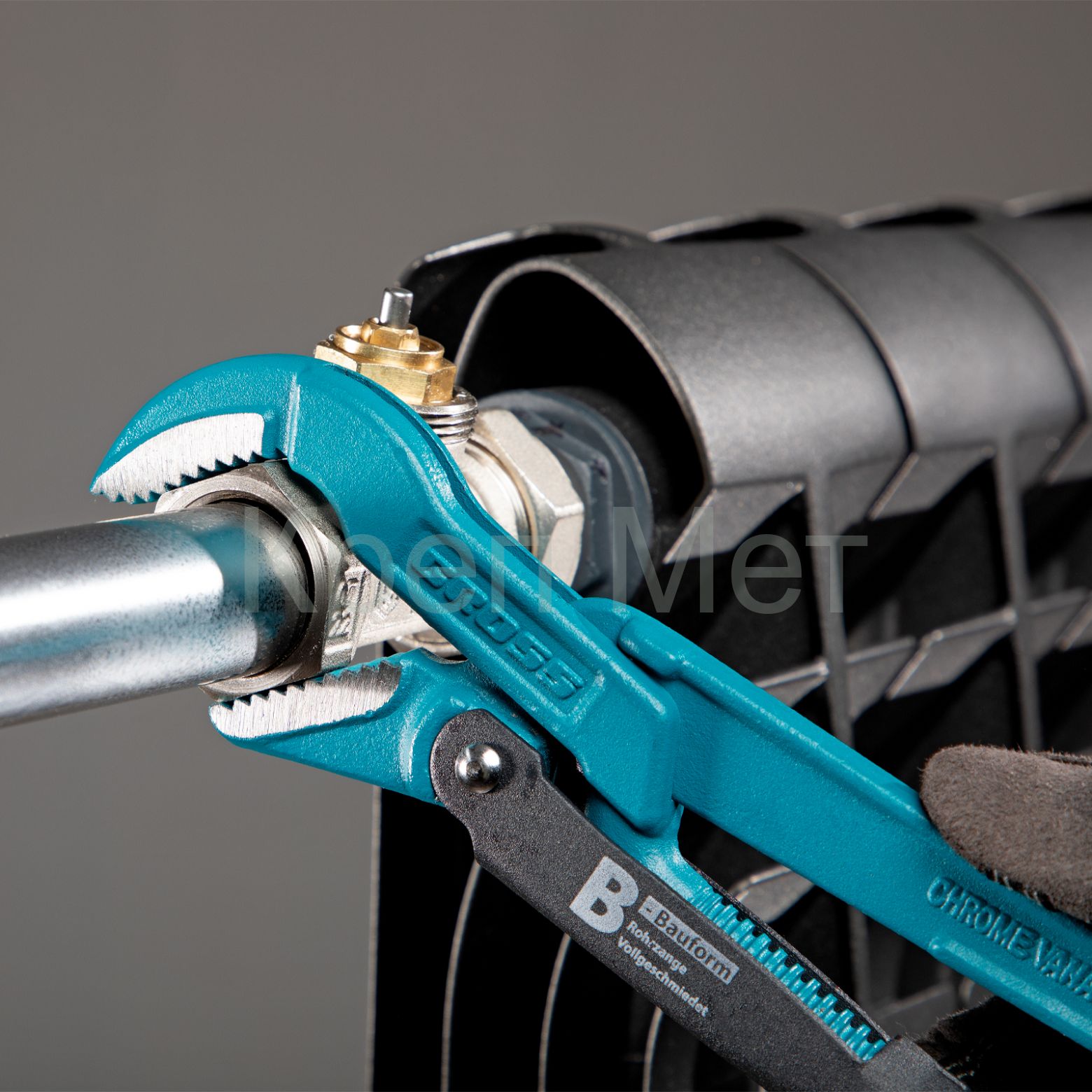 - Высокая прочность — цельнокованый корпус изготовлен из хромованадиевой стали, а губки закалены до твердости 57-60 HRC.