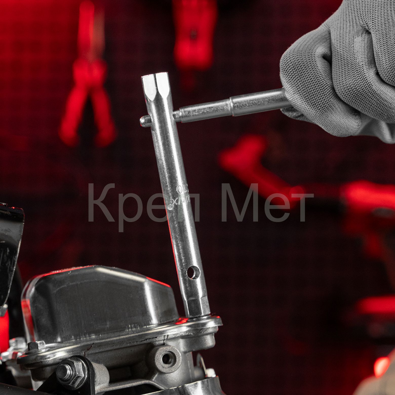 - Ключ имеет два шестигранных профиля, удобных для работы с крепежом размером 8 и 10 мм.