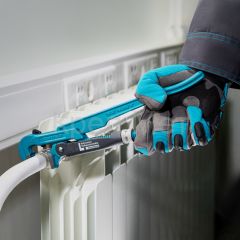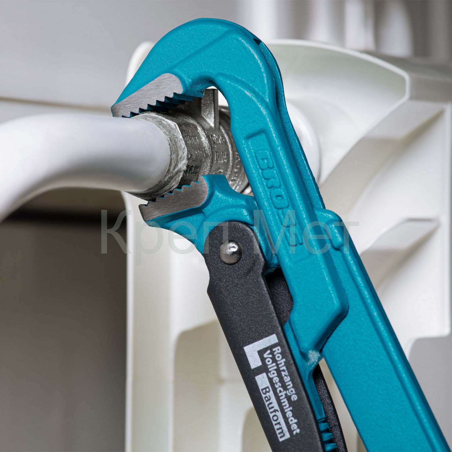 • Самоблокируемый захват труб и деталей — зубья прогрессивной формы наклонены против направления вращения.