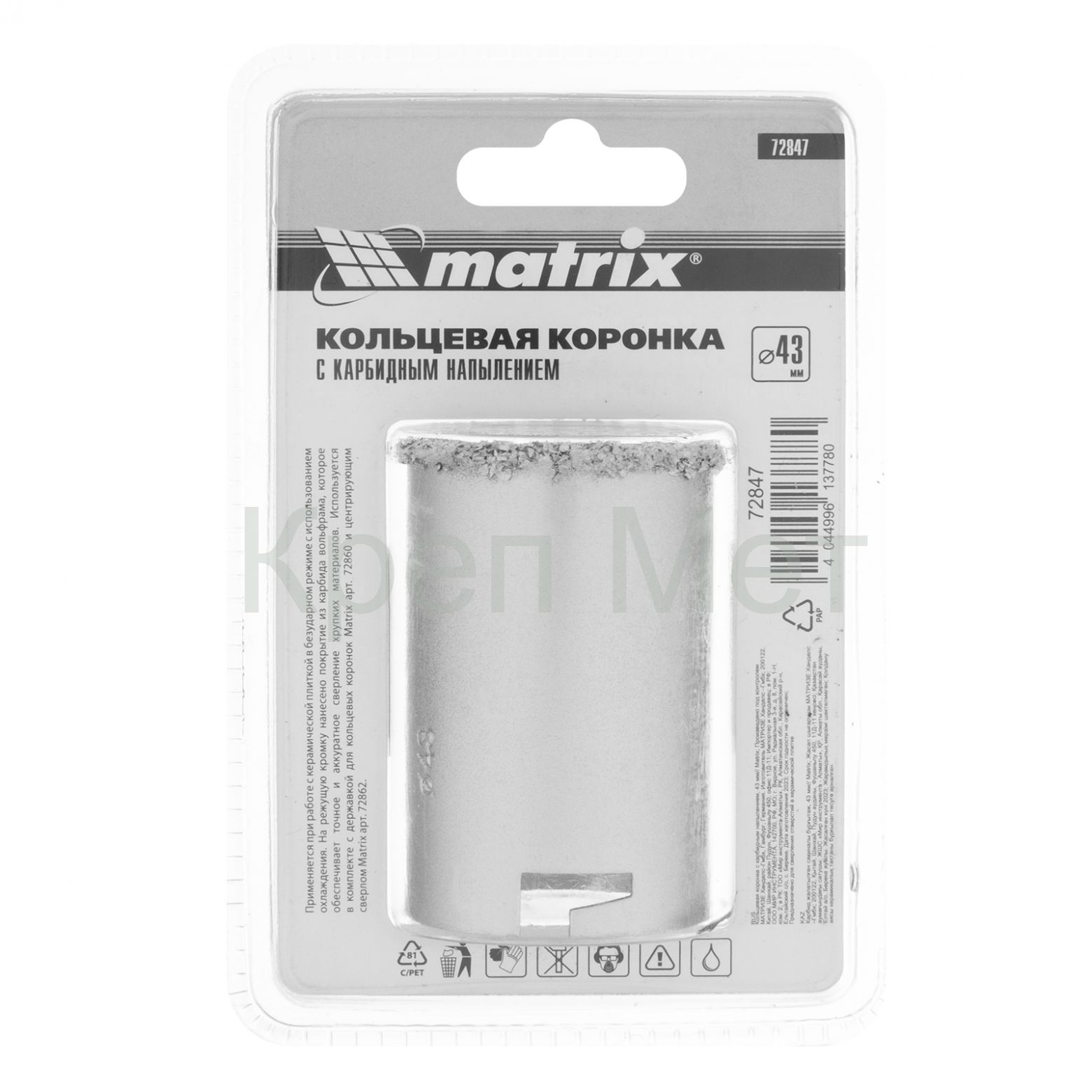 - Кольцевая коронка с карбидным напылением, 43 мм Matrix