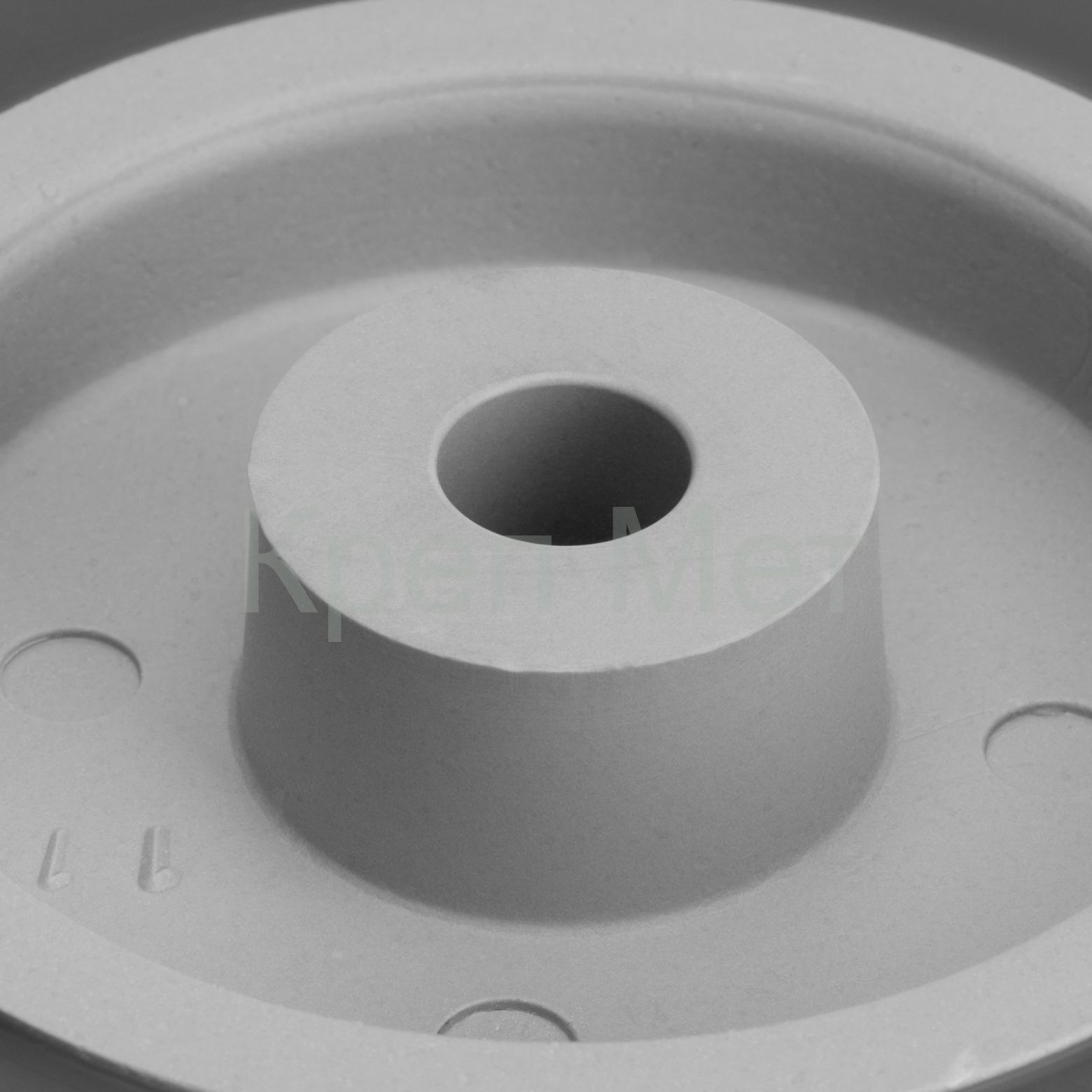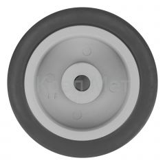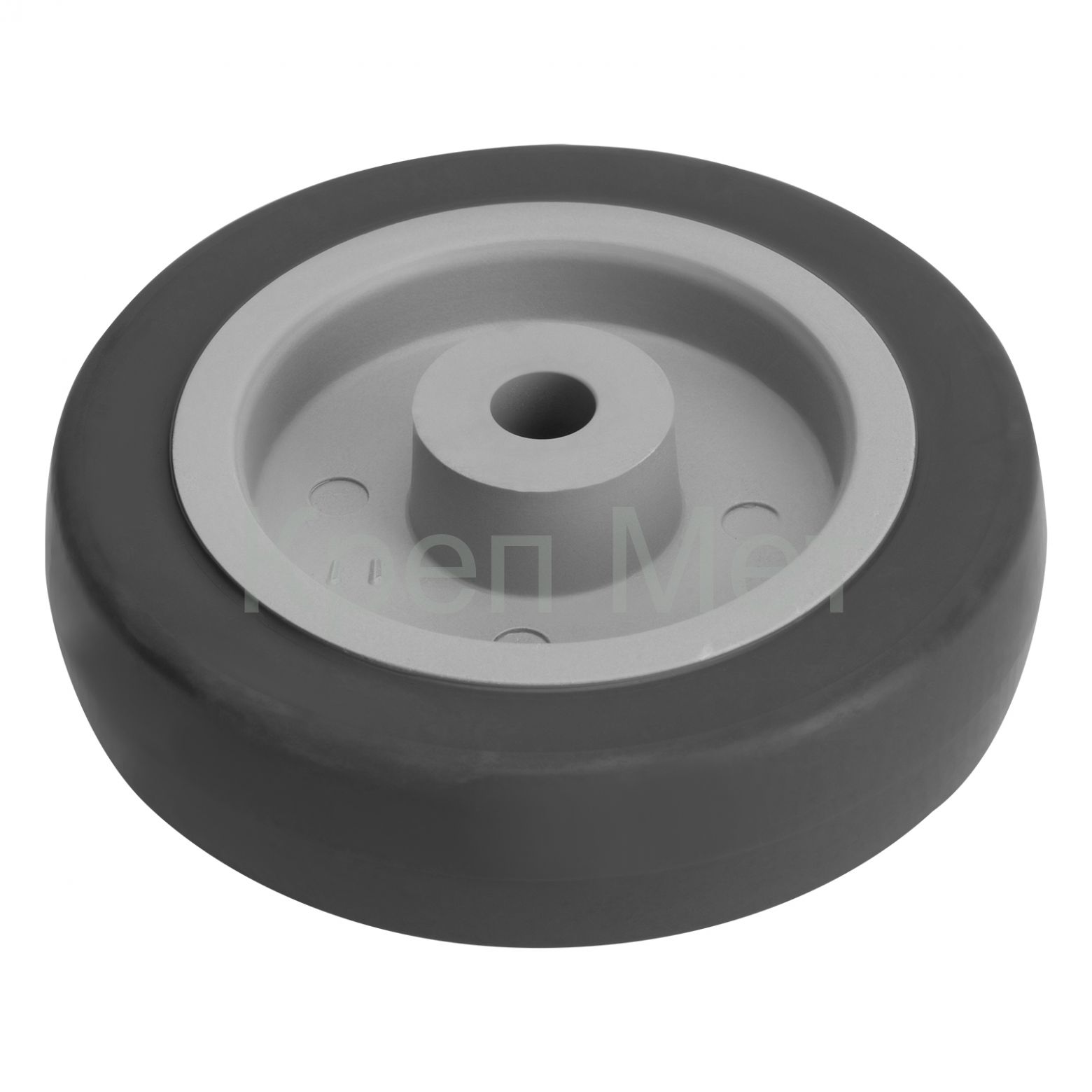 - Универсальность — контактная поверхность выполнена из термопластичной серой резины, поэтому колесо может применяться на различных покрытиях, долгое время сохраняя рабочие качества.