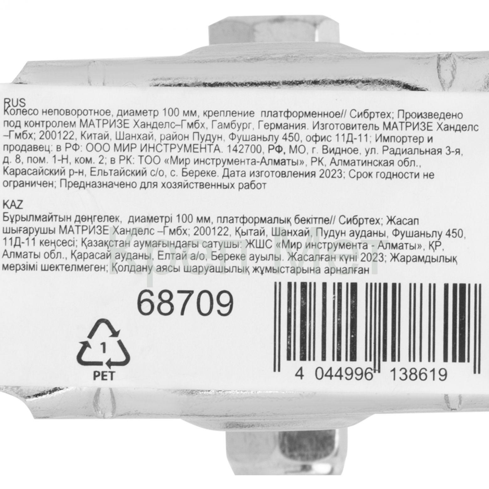 - Колесо неповоротное D 100 мм, крепление платформенное Сибртех