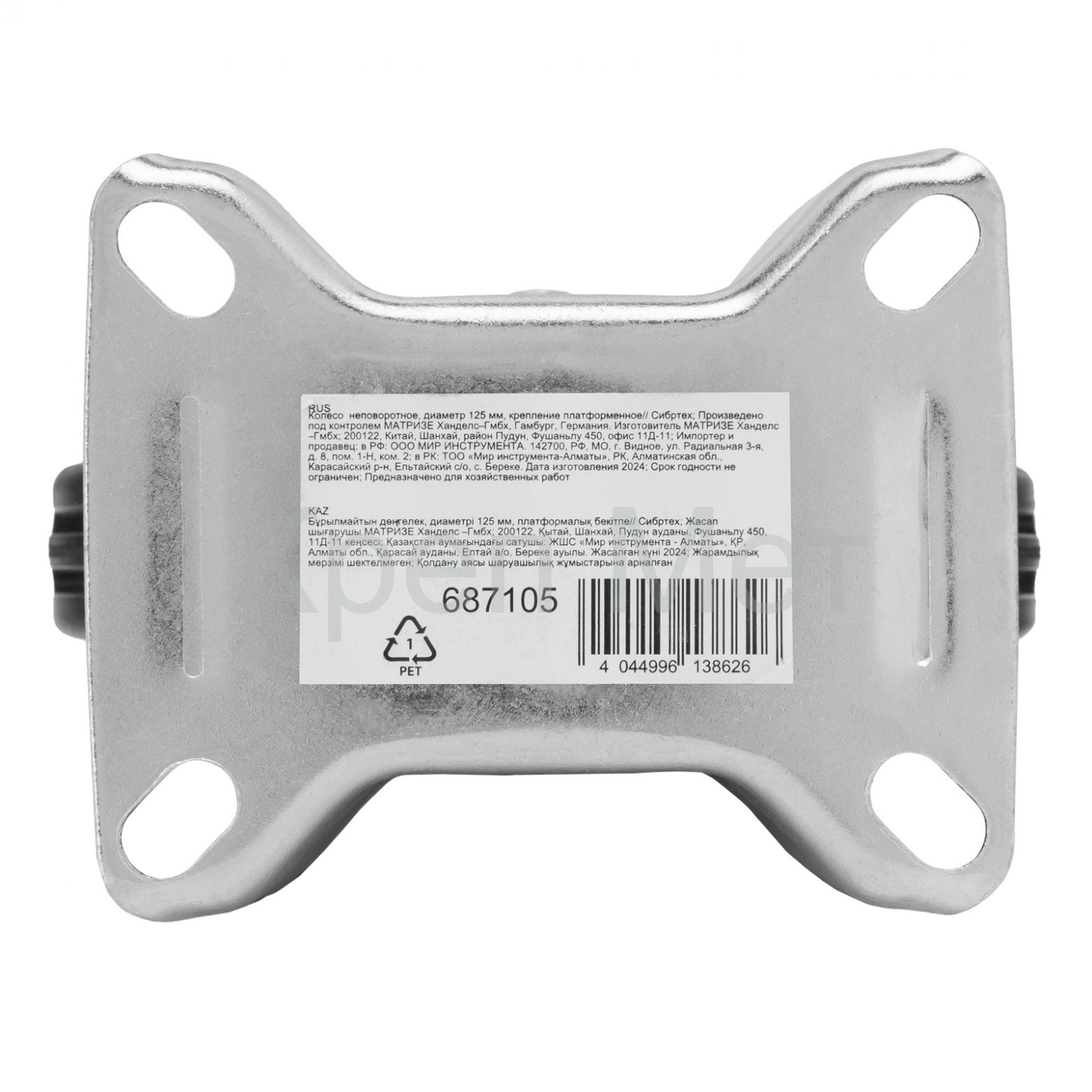 Колесо неповоротное D 125 мм, крепление платформенное Сибртех