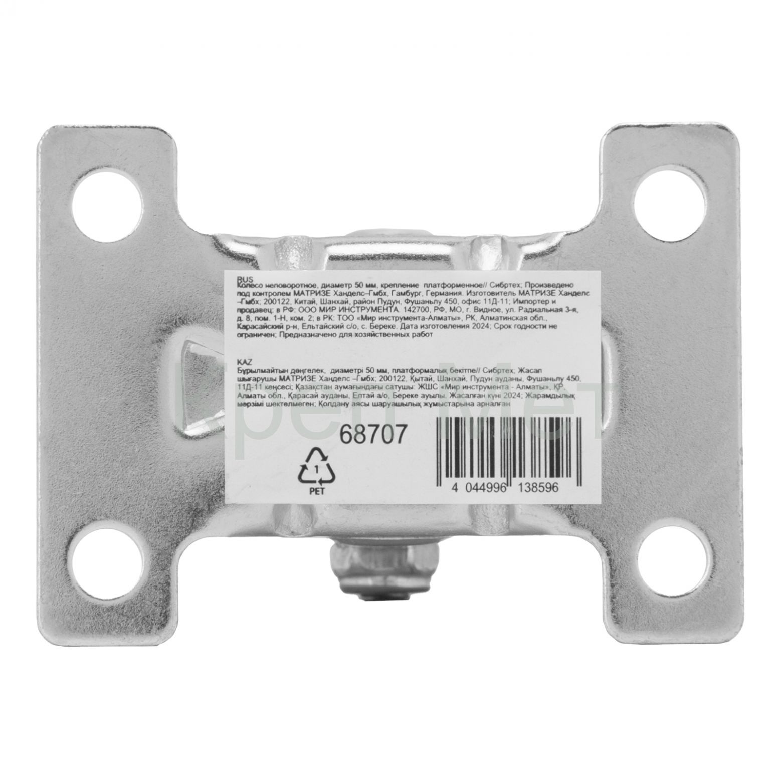 Колесо неповоротное D 50 мм, крепление платформенное Сибртех