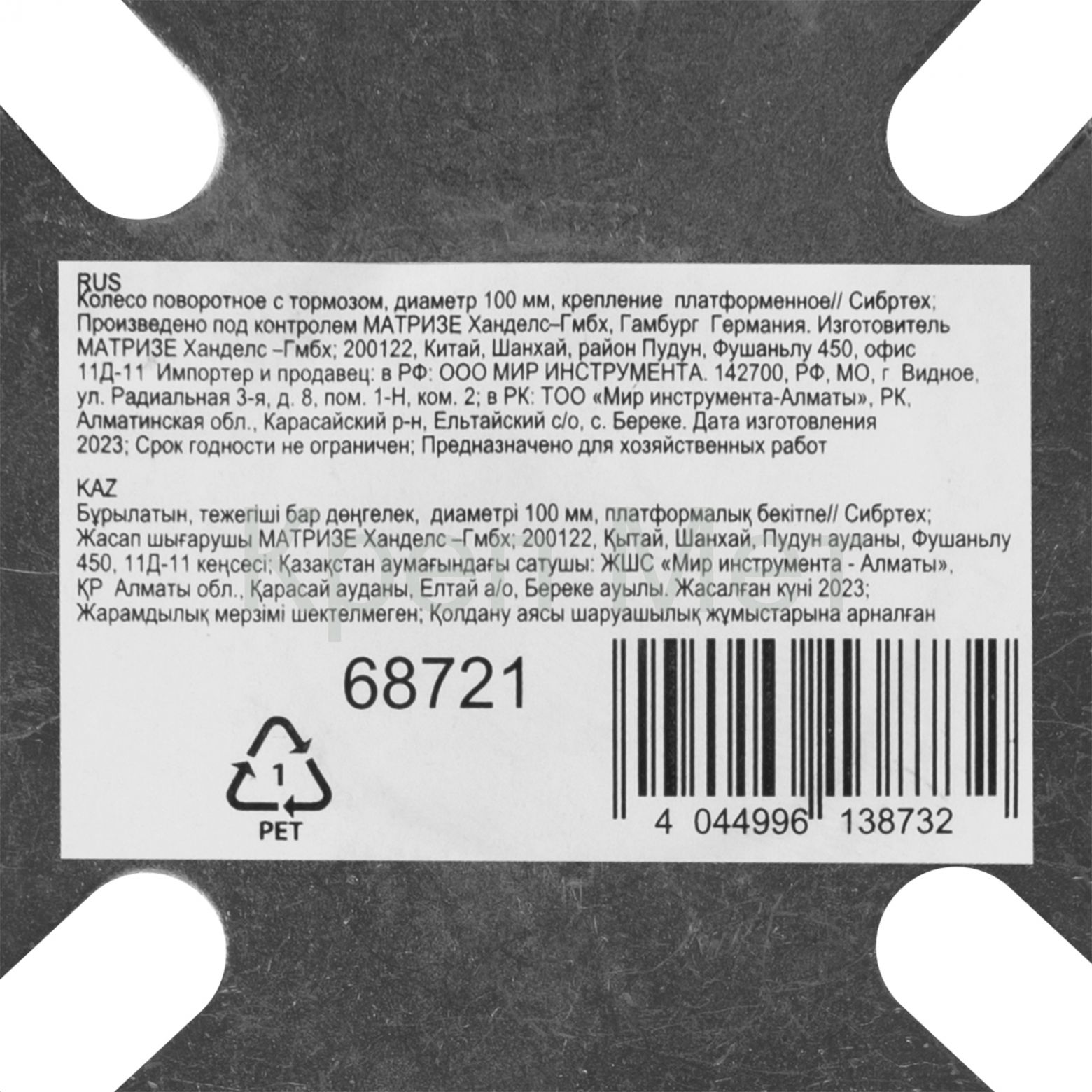 - Колесо поворотное с тормозом D 100 мм, крепление платформенное Сибртех