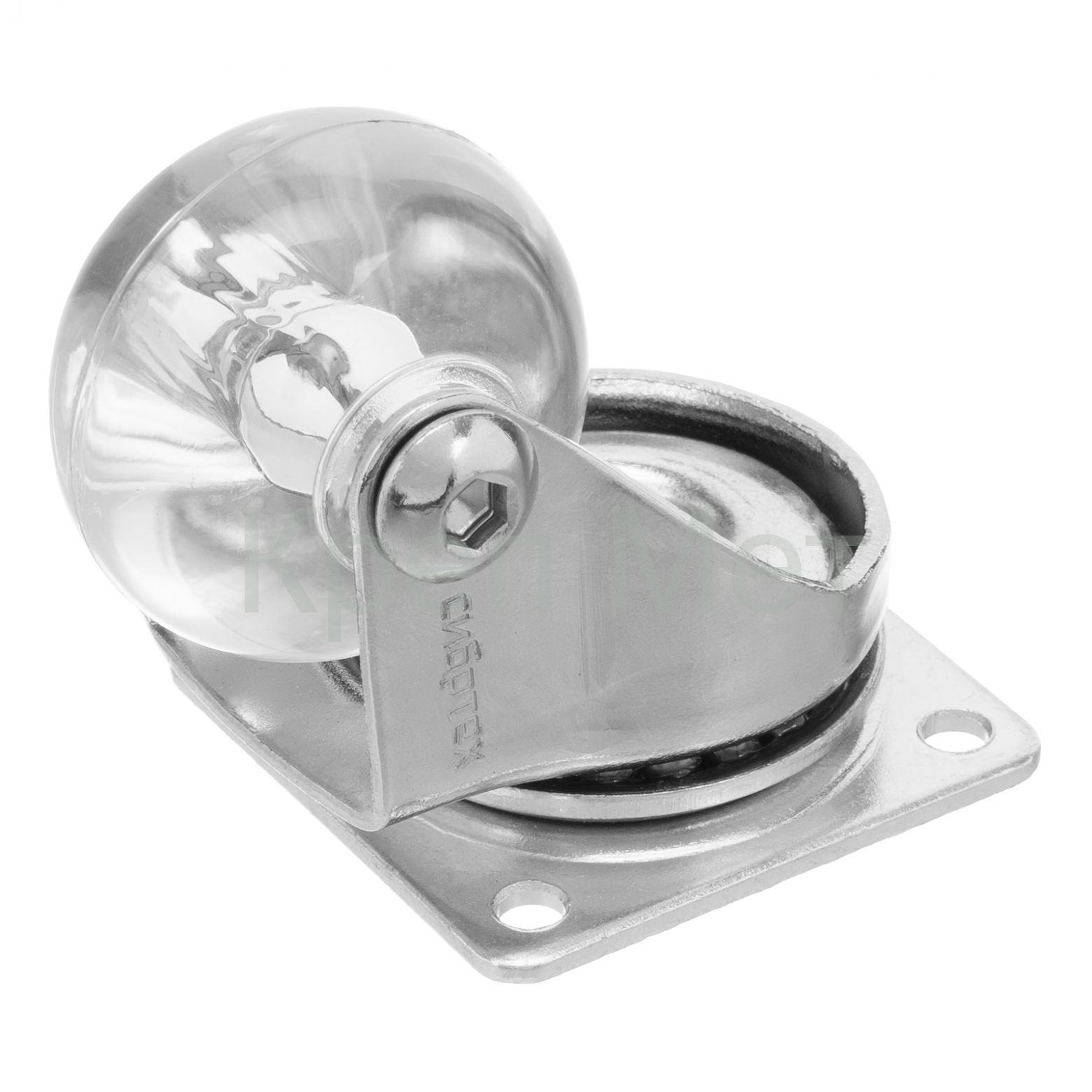 - Колесо ПУ прозрачное поворотное d-35 мм, крепление платформенное Сибртех