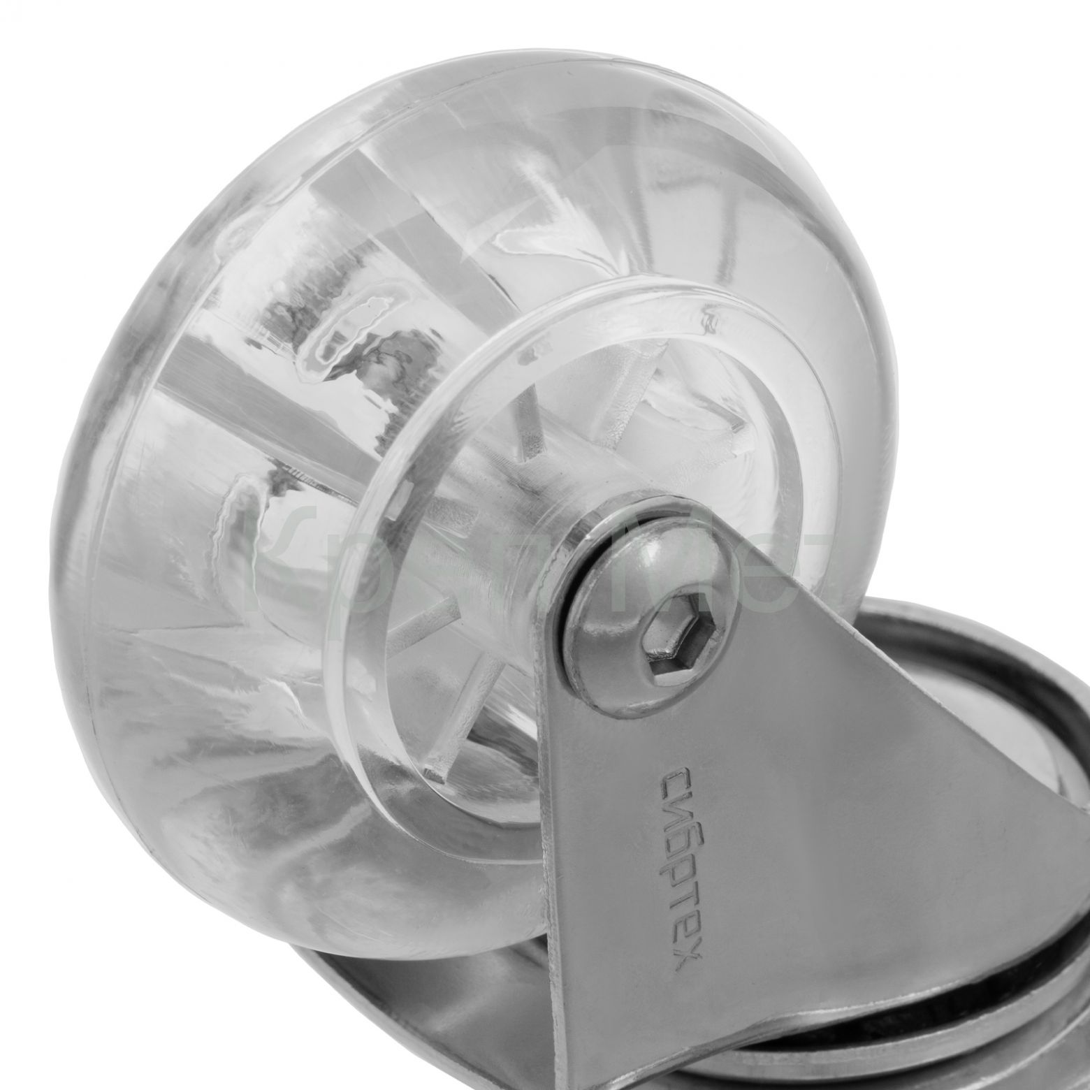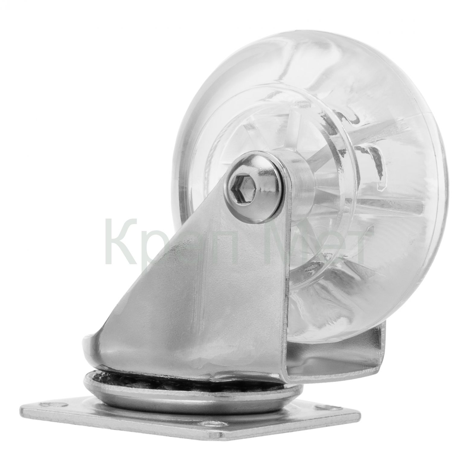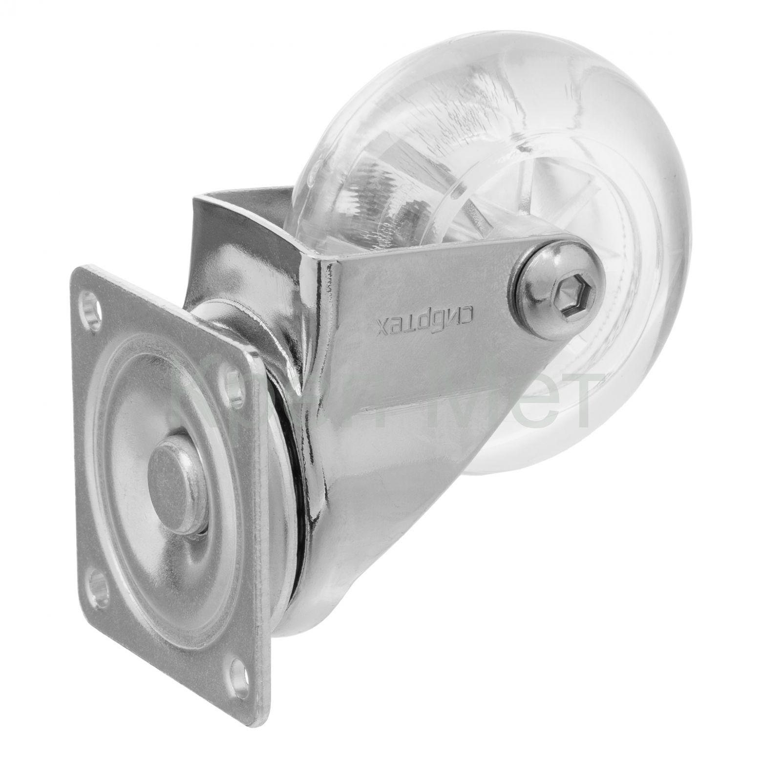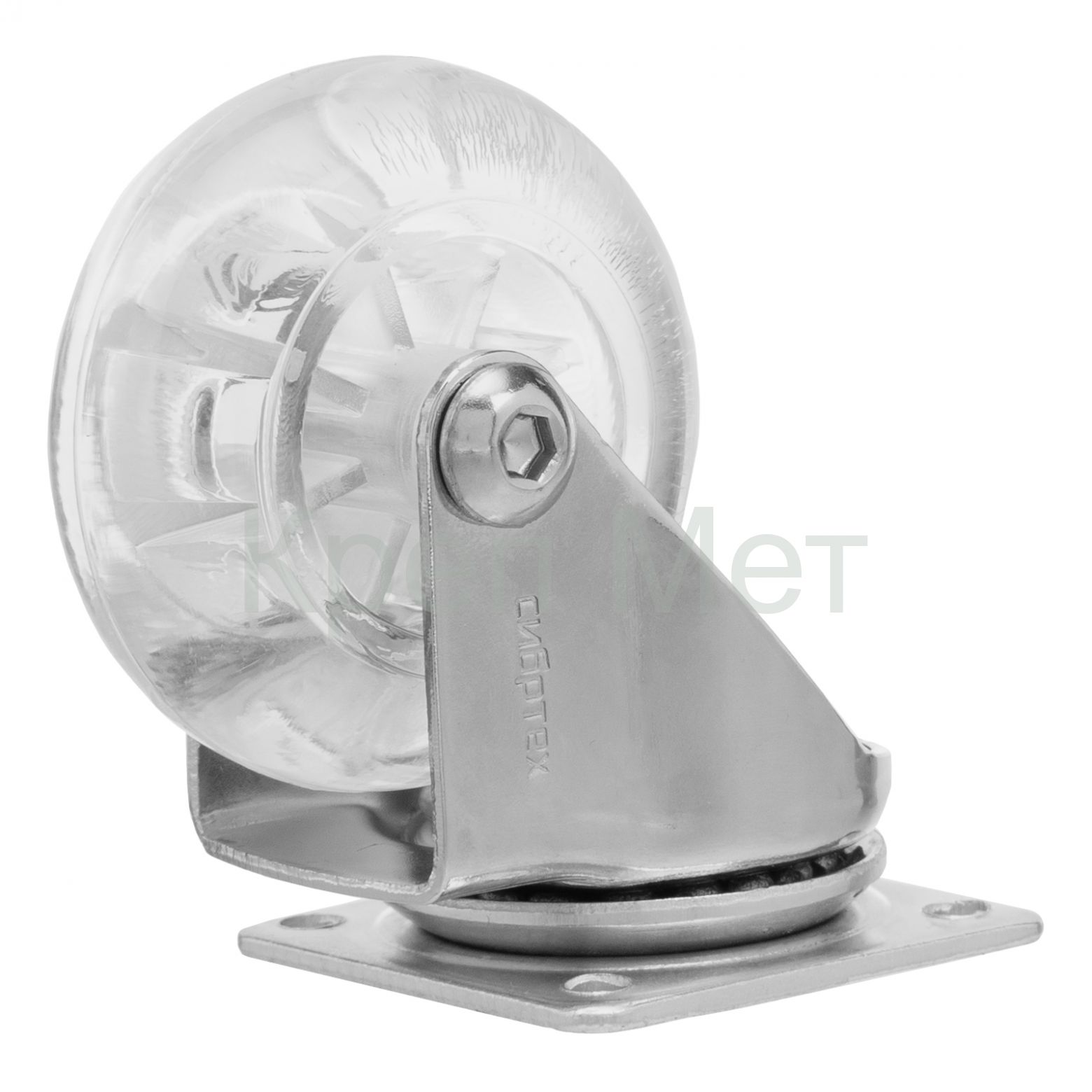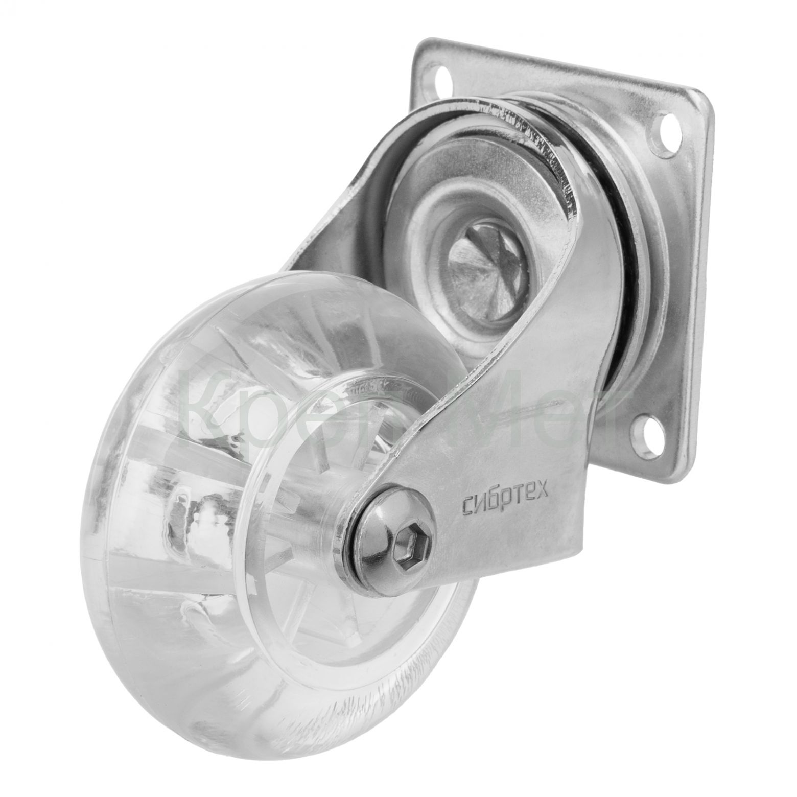 - Колесо ПУ прозрачное поворотное d-50 мм, крепление платформенное Сибртех