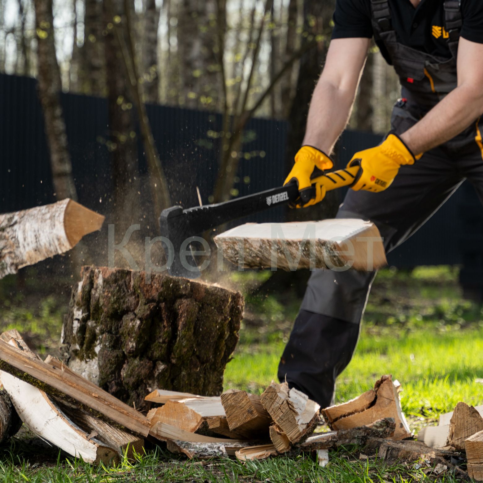 - Безопасное хранение и транспортировка — колун поставляется с защитным кожухом для лезвия.