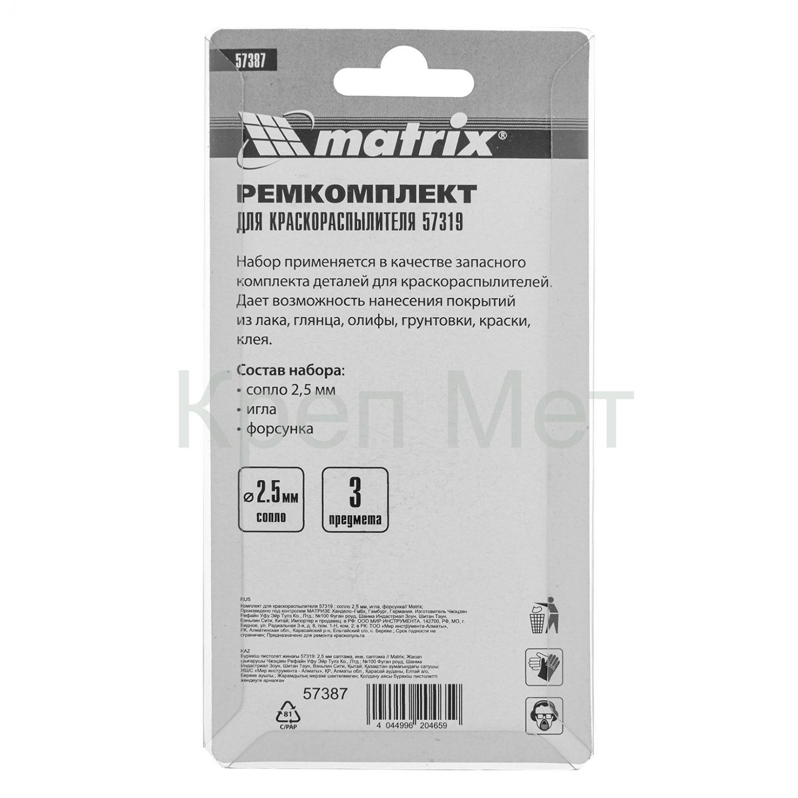 - Комплект для краскораспылителя 57319 : сопло 2,5 мм, игла, форсунка Matrix