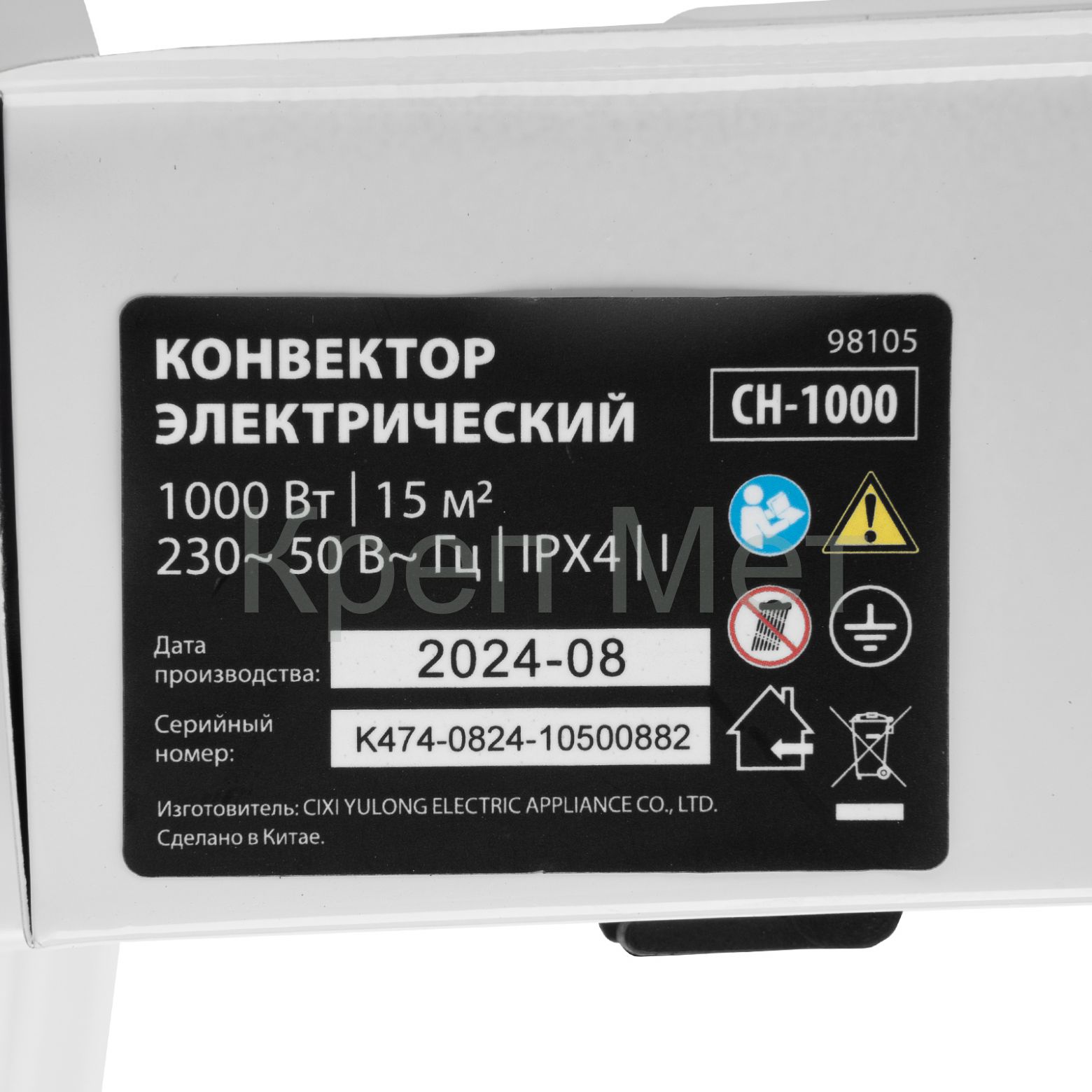 Конвектор электрический CH-1000, 1000 Вт, X-образный нагреватель, термостат, колеса MTX